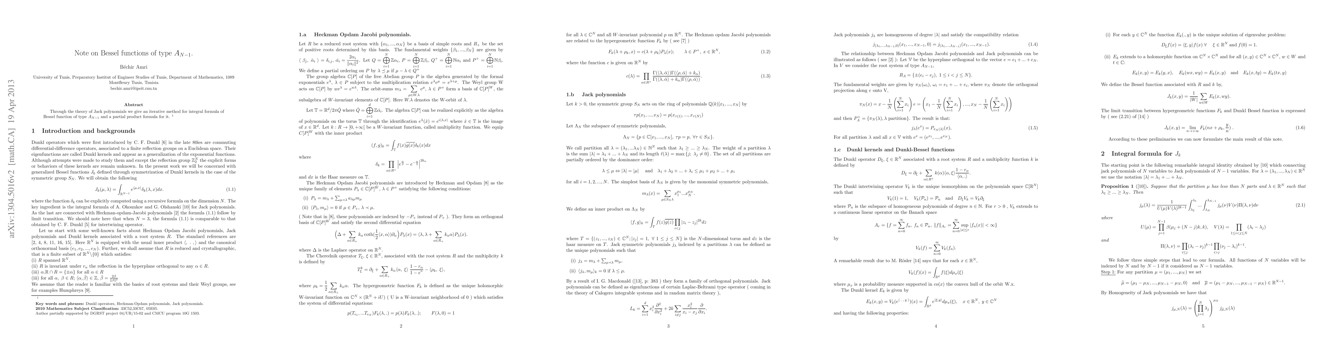 Through the theory of Jack polynomials we give an iterative method for integral formula of Dunkl-Bessel functions of type $A_{N-1}$ and a partial product formula for it.