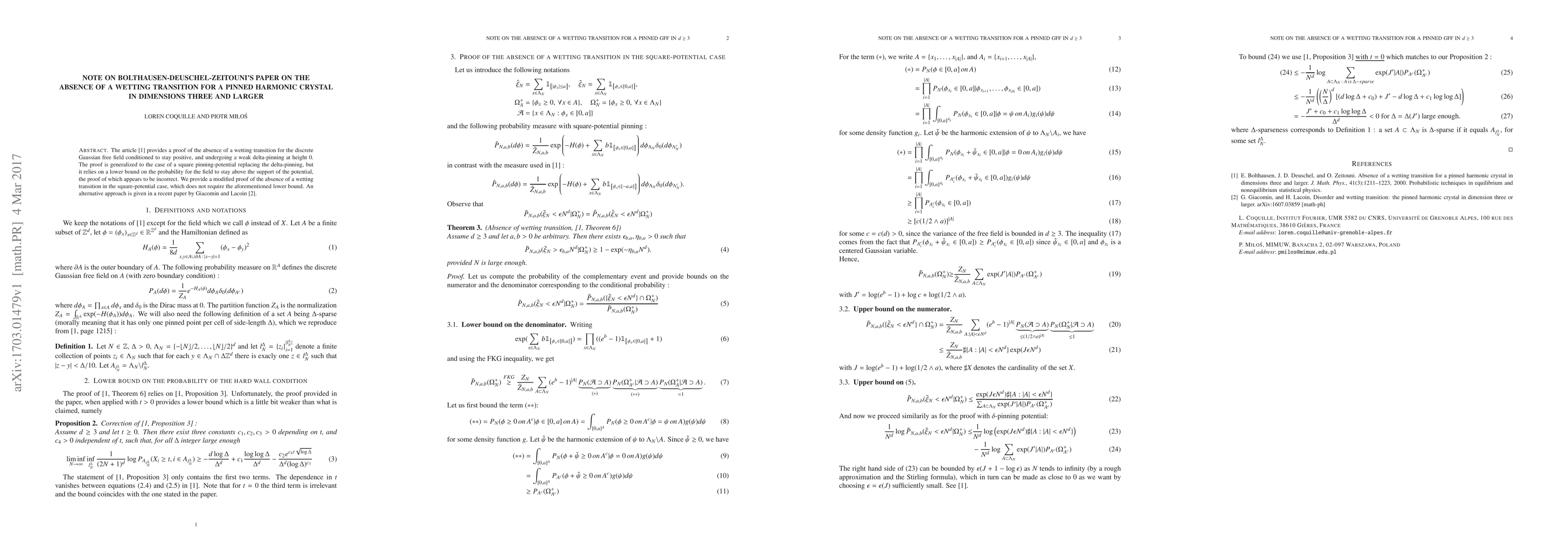 Researchers provide a modified proof that eliminates a lower bound error in a paper on harmonic crystals, confirming no wetting transition exists for pinned crystals in dimensions three and larger.