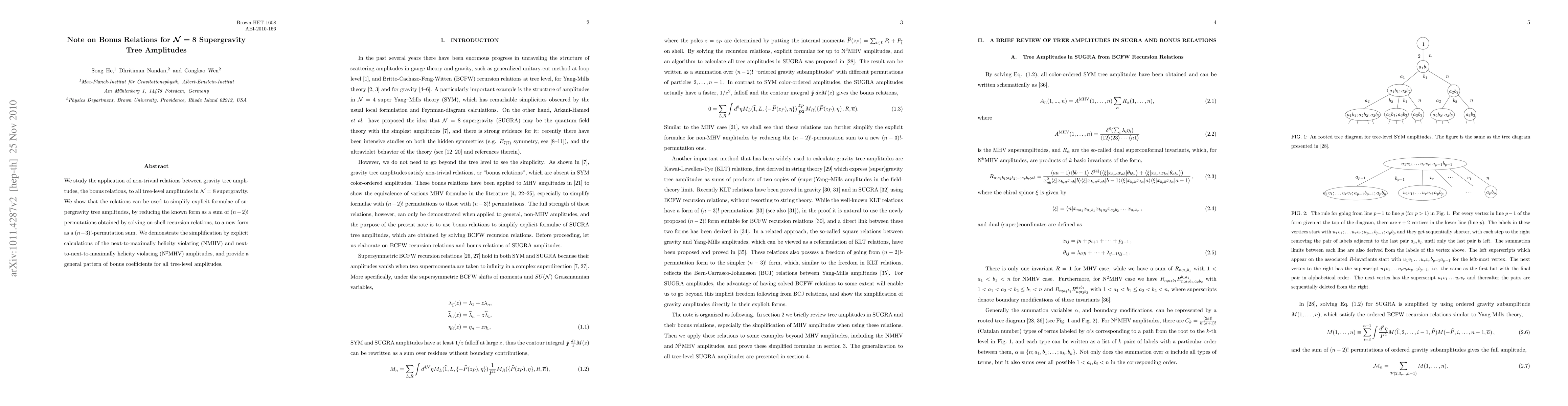 This paper explores how non-trivial bonus relations can simplify N=8 supergravity tree amplitudes, reducing their explicit formula from an (n-2)!-permutation sum to a more efficient (n-3)!-permutation sum. It demonstrates this simplification through calculations of NMHV and N^2MHV amplitudes and outlines a general pattern for bonus coefficients.