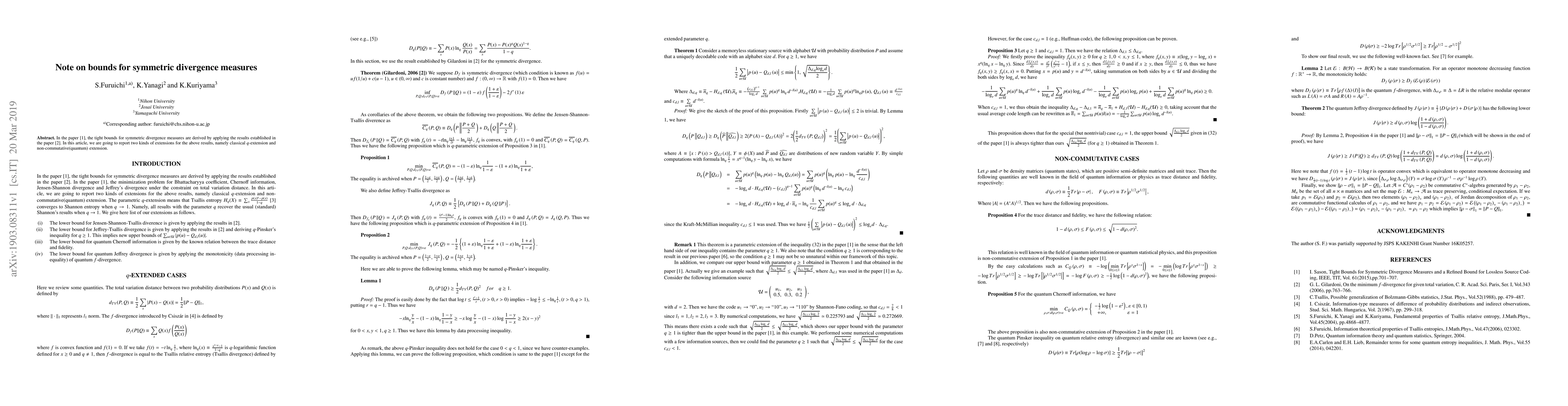Researchers extend tight bounds for symmetric divergence measures to classical q-extension and non-commutative extensions, improving understanding of information theory.