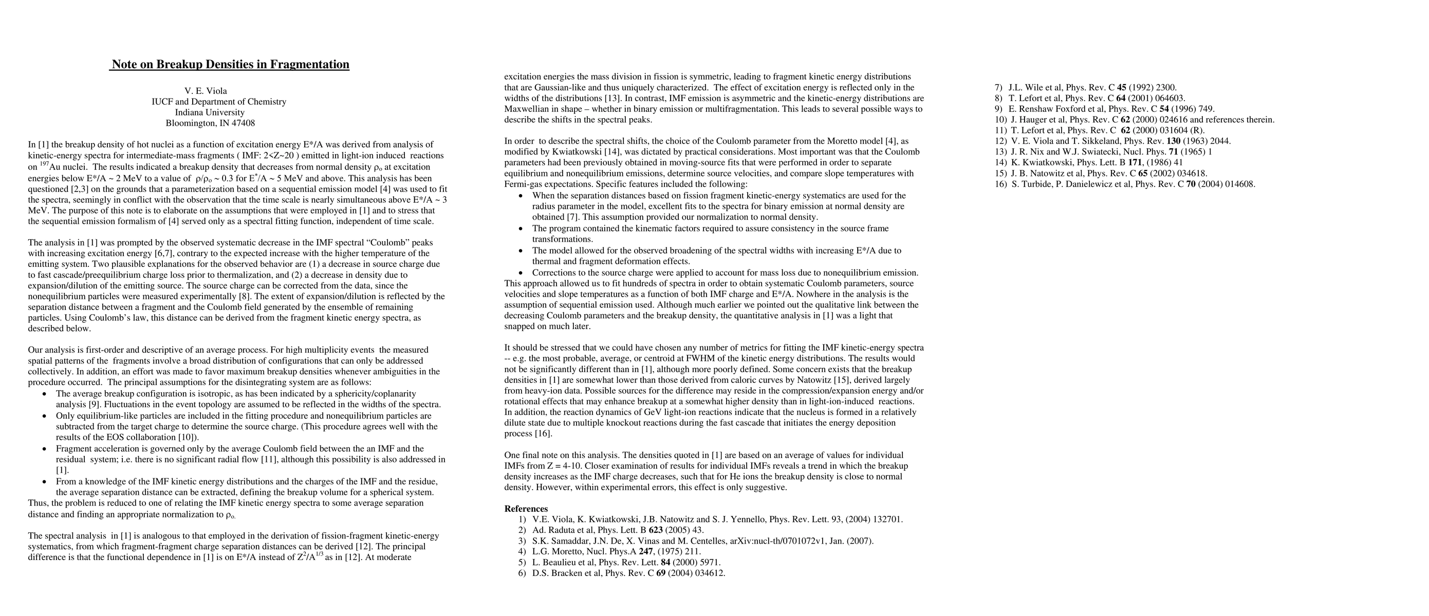 This note details the process for calculating breakup densities in nuclear fragmentation, emphasizing that the mathematical approach used is purely for spectral fitting and does not suggest any particular reaction mechanism.