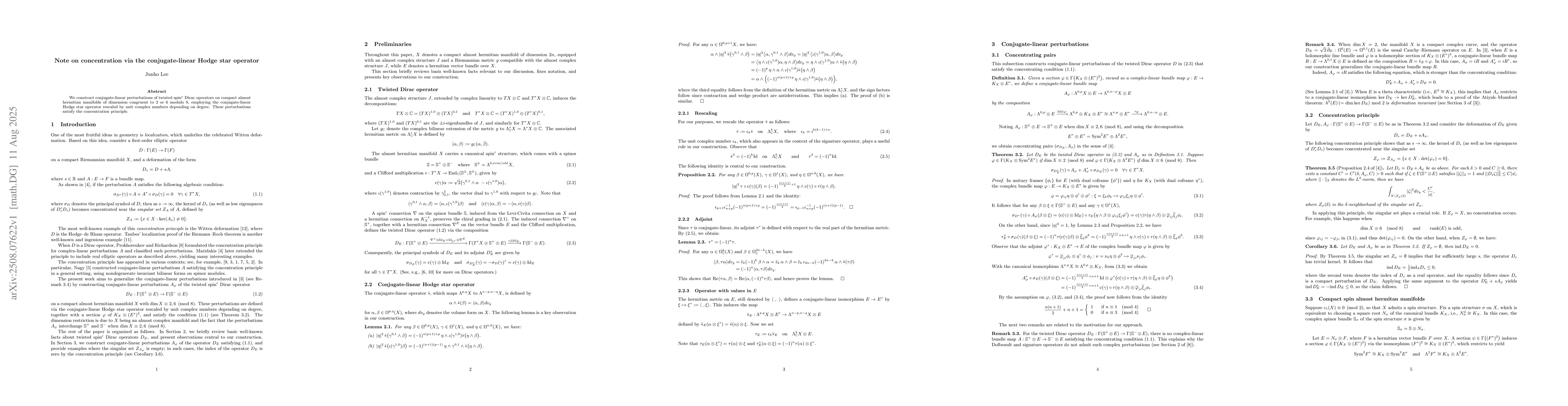 We construct conjugate-linear perturbations of twisted spinc Dirac operators on compact almost hermitian manifolds of dimension congruent to 2 or 6 modulo 8, employing the conjugate-linear Hodge star operator rescaled by unit complex numbers depending on degree. These perturbations satisfy the concentration principle.