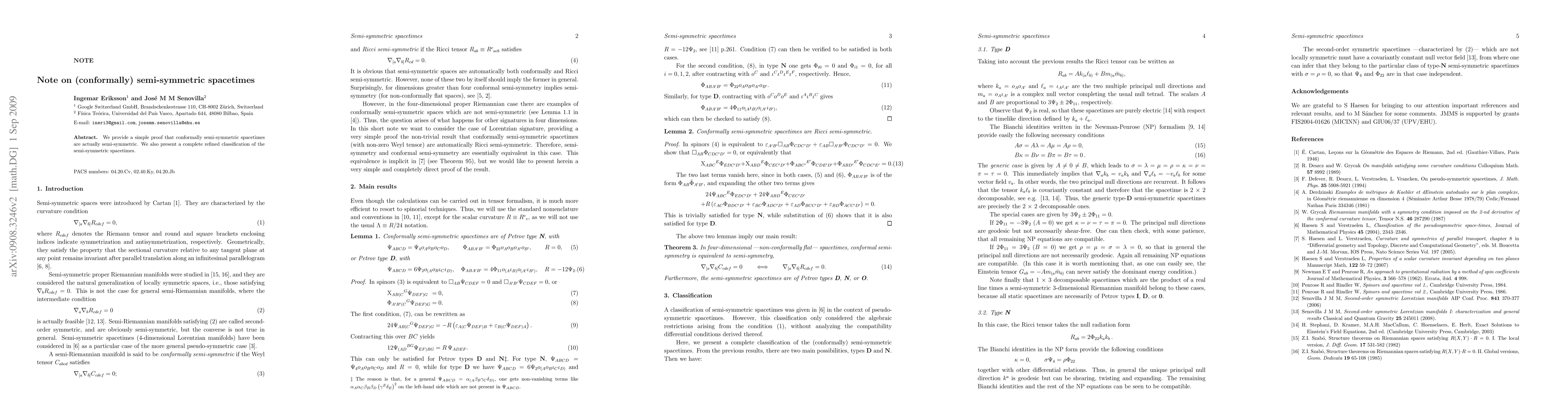 We provide a simple proof that conformally semi-symmetric spacetimes are actually semi-symmetric. We also present a complete refined classification of the semi-symmetric spacetimes.