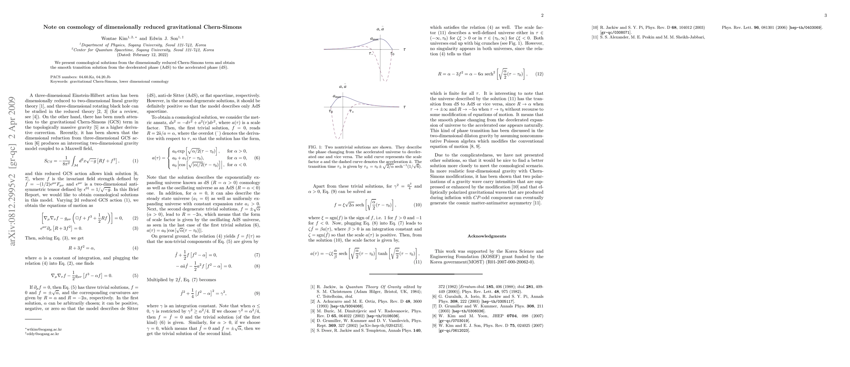 This paper explores cosmological solutions derived from the dimensionally reduced Chern-Simons term, achieving a smooth transition from the decelerated phase (AdS) to the accelerated phase (dS) in the universe's expansion.
