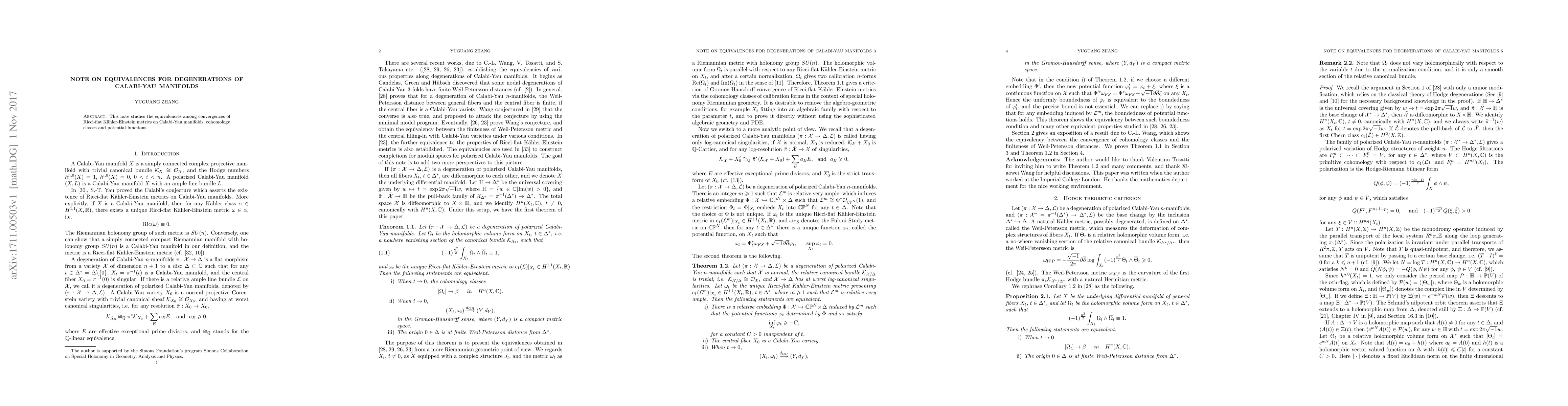 This note studies the equivalencies among convergences of Ricci-flat K\"{a}hler-Einstein metrics on Calabi-Yau manifolds, cohomology classes and potential functions.