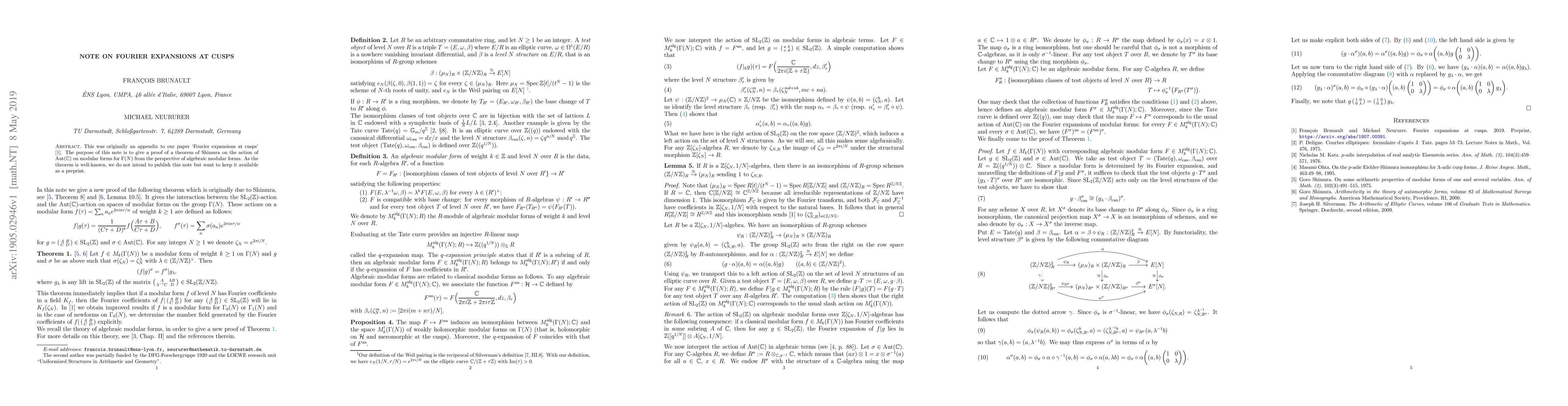 This was originally an appendix to our paper `Fourier expansions at cusps' [arXiv:1807.00391]. The purpose of this note is to give a proof of a theorem of Shimura on the action of $\mathrm{Aut}(\mathbb{C})$ on modular forms for $\Gamma(N)$ from the perspective of algebraic modular forms. As the theorem is well-known, we do not intend to publish this note but want to keep it available as a preprint.