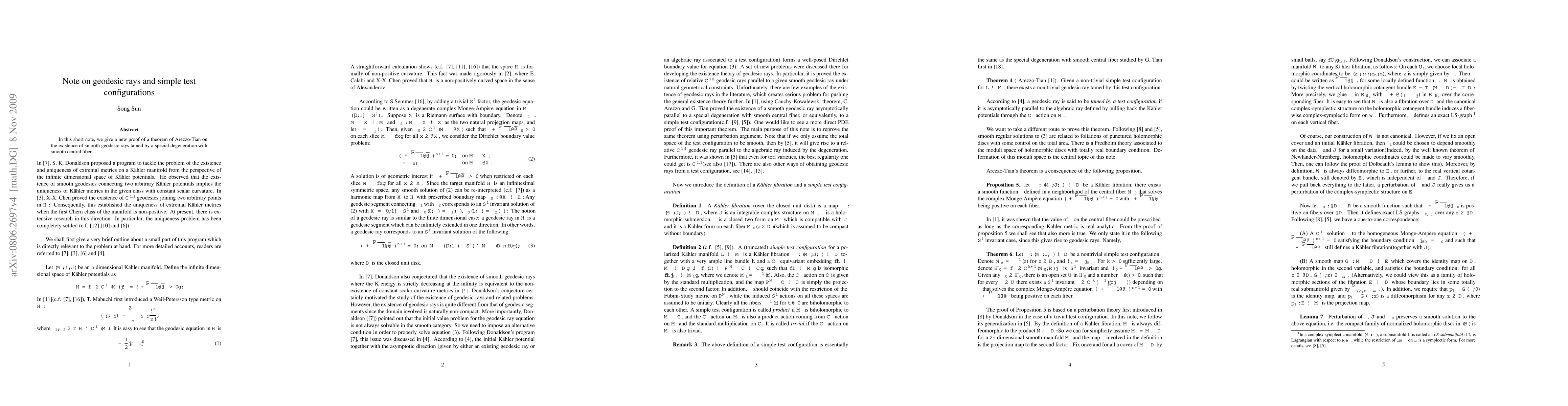 In this short note, we give a new proof of a theorem of Arezzo-Tian on the existence of smooth geodesic rays tamed by a special degeneration.
