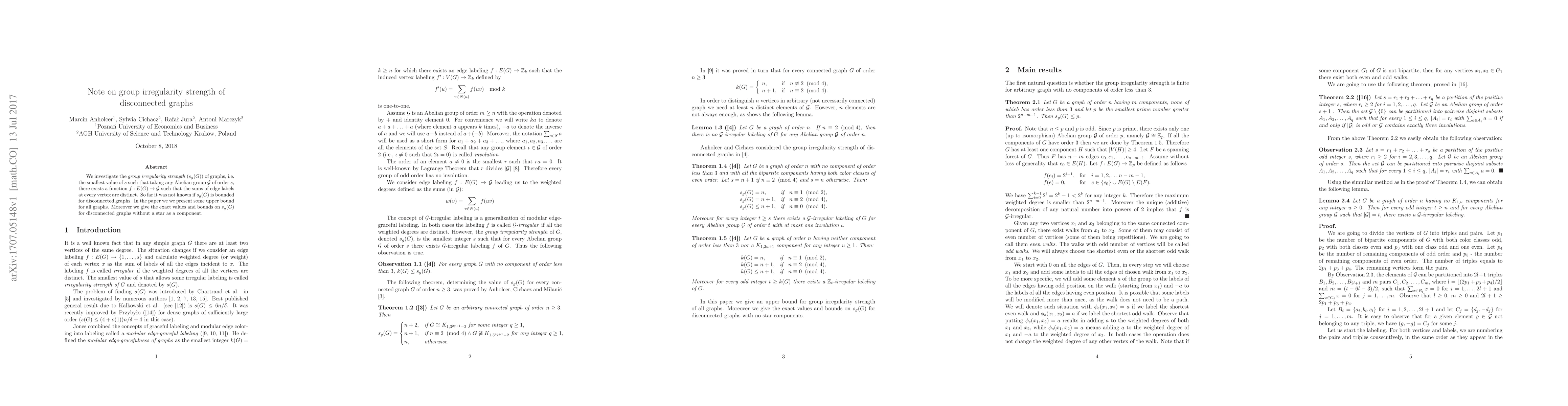 This paper explores the group irregularity strength ($s_g(G)$) of disconnected graphs, determining the smallest Abelian group order for which edge labelings ensure distinct vertex sums. It establishes an upper bound for all disconnected graphs and provides exact values and bounds for those without a star component.