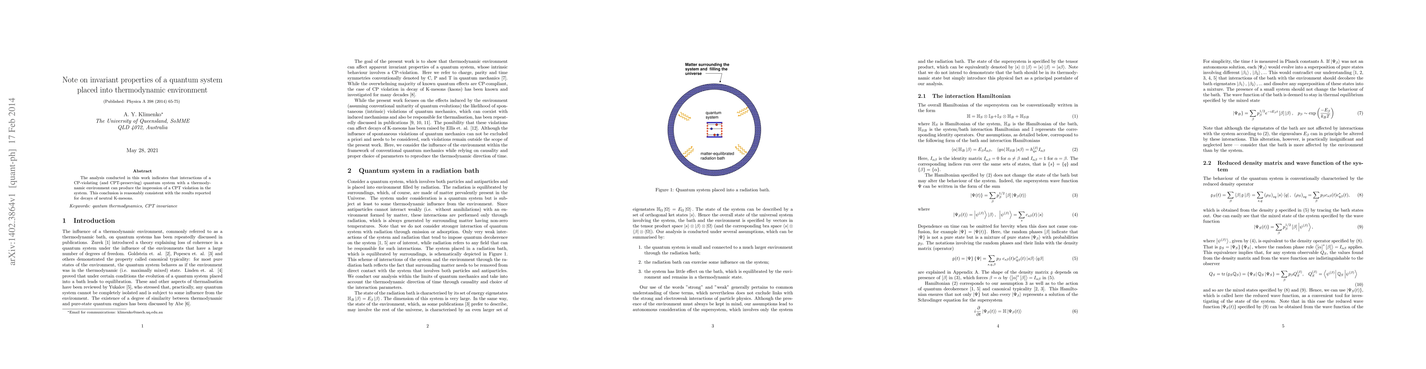 This research suggests that a quantum system exhibiting CP-violation but preserving CPT, when interacting with a thermodynamic environment, can appear to violate CPT. This finding aligns with observations in neutral K-meson decays.