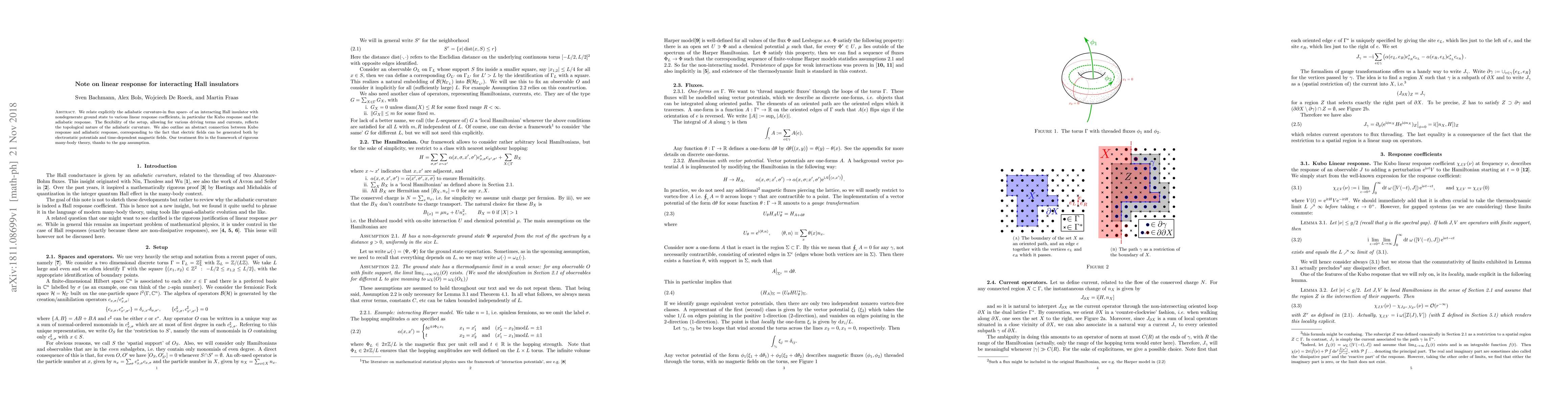 The paper establishes a connection between adiabatic curvature in flux space of interacting Hall insulators and linear response coefficients, such as Kubo and adiabatic responses, reflecting their topological nature. It also discusses an abstract link between Kubo and adiabatic responses, rooted in the generation of electric fields by electrostatic potentials and magnetic fields.
