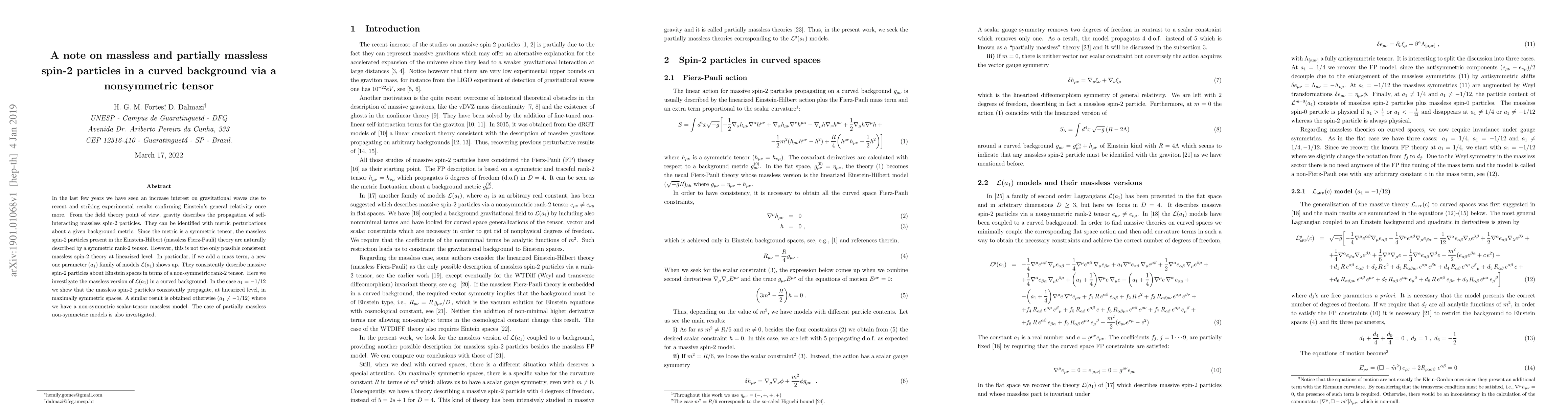 In the last few years we have seen an increase interest on gravitational waves due to recent and striking experimental results confirming Einstein's general relativity once more. From the field theory point of view, gravity describes the propagation of self-interacting massless spin-2 particles. They can be identified with metric perturbations about a given background metric. Since the metric is a symmetric tensor, the massless spin-2 particles present in the Einstein-Hilbert (massless Fierz-Pauli) theory are naturally described by a symmetric rank-2 tensor. However, this is not the only possible consistent massless spin-2 theory at linearized level. In particular, if we add a mass term, a new one parameter $(a_1)$ family of models ${\cal L}(a_1)$ shows up. They consistently describe massive spin-2 particles about Einstein spaces in terms of a non-symmetric rank-2 tensor. Here we investigate the massless version of ${\cal L}(a_1)$ in a curved background. In the case $a_1=-1/12$ we show that the massless spin-2 particles consistently propagate, at linearized level, in maximally symmetric spaces. A similar result is obtained otherwise $(a_1 \ne -1/12)$ where we have a non-symmetric scalar-tensor massless model. The case of partially massless non-symmetric models is also investigated.
