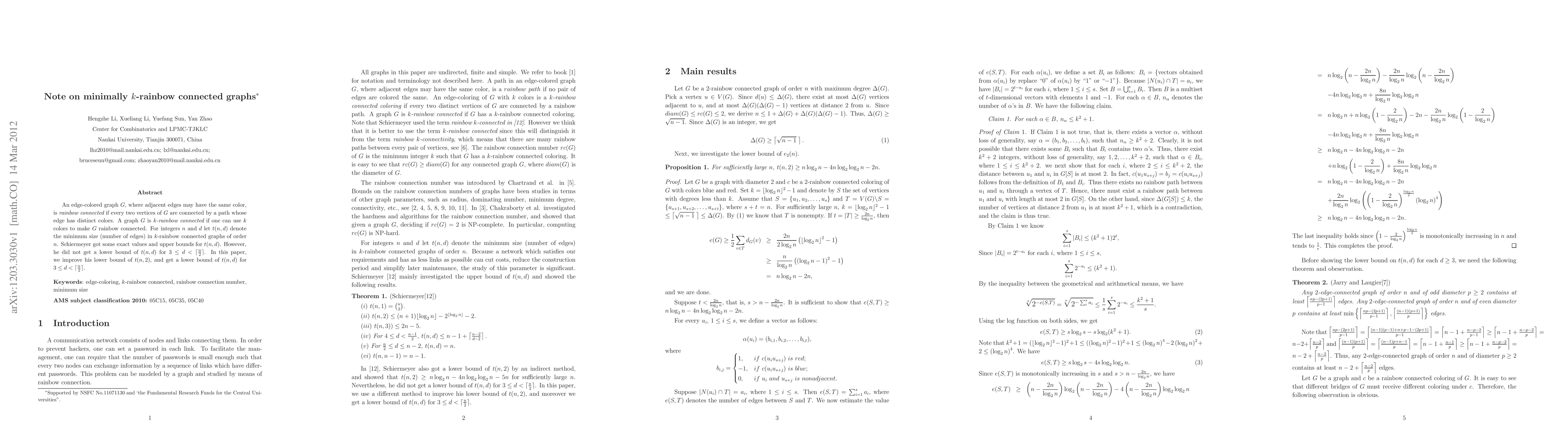 An edge-colored graph $G$, where adjacent edges may have the same color, is {\it rainbow connected} if every two vertices of $G$ are connected by a path whose edge has distinct colors. A graph $G$ is {\it $k$-rainbow connected} if one can use $k$ colors to make $G$ rainbow connected. For integers $n$ and $d$ let $t(n,d)$ denote the minimum size (number of edges) in $k$-rainbow connected graphs of order $n$. Schiermeyer got some exact values and upper bounds for $t(n,d)$. However, he did not get a lower bound of $t(n,d)$ for $3\leq d<\lceil\frac{n}{2}\rceil $. In this paper, we improve his lower bound of $t(n,2)$, and get a lower bound of $t(n,d)$ for $3\leq d<\lceil\frac{n}{2}\rceil$.