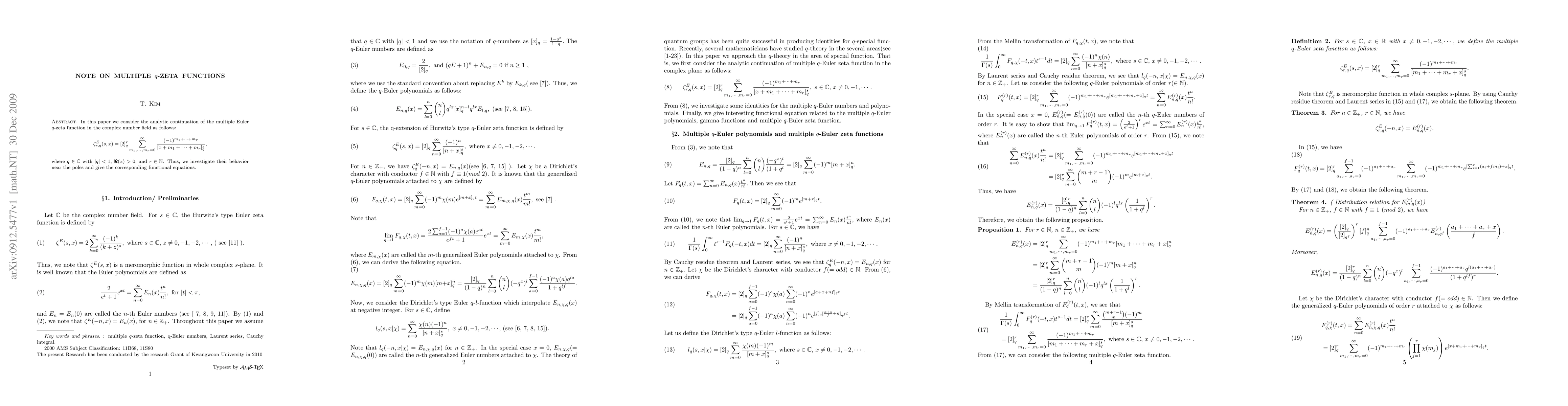 In this paper, we construct the alternating multiple q-zeta function(= Multiple Euler q-zeta function) and investigate their properties. Finally, we give some interesting functional eauations related to q-Euler polynomials.