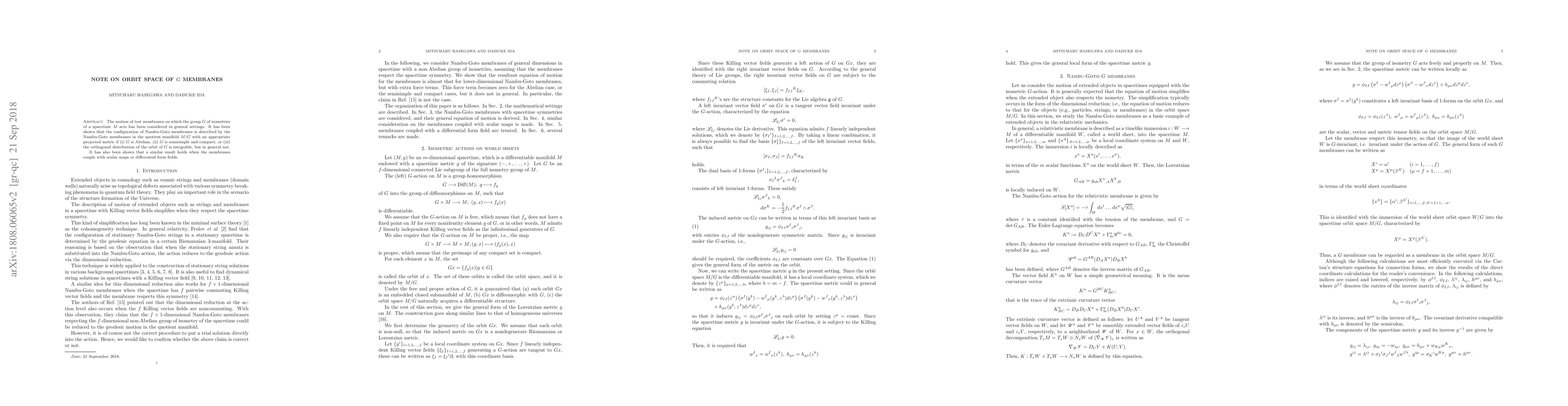 The motion of test membranes on which the group $G$ of isometries of a spacetime $M$ acts has been considered in general settings. It has been shown that the configuration of Nambu-Goto membranes is described by the Nambu-Goto membranes in the quotient manifold $M/G$ with an appropriate projected metric if (i) $G$ is Abelian, (ii) $G$ is semisimple and compact, or (iii) the orthogonal distribution of the orbit of $G$ is integrable, but in general not. It has also been shown that a similar result holds when the membranes couple with scalar maps or differential form fields.