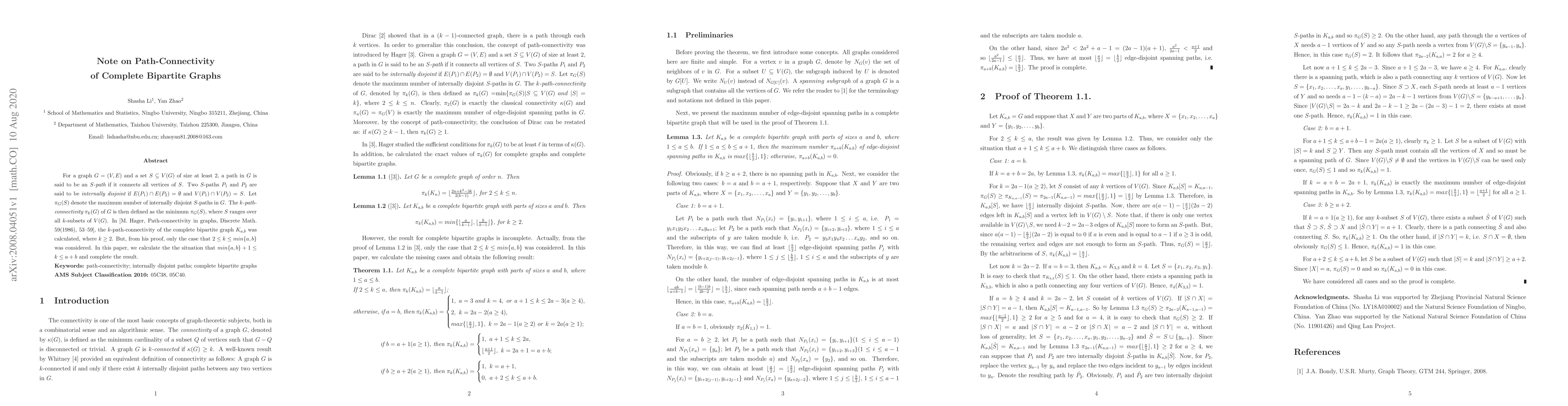 This paper extends previous research on path-connectivity in complete bipartite graphs K_{a,b}, calculating the k-path-connectivity for cases where 2 ∞ k ≤ min{a,b}+1 and k ≤ a+b, providing new insights into graph connectivity.