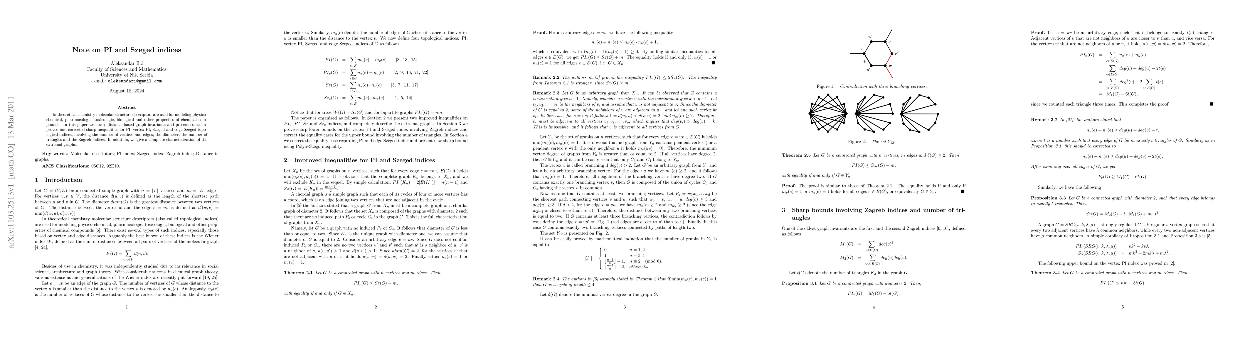 This paper investigates improved inequalities for several distance-based graph invariants, including PI, vertex PI, Szeged, and edge Szeged indices, and provides complete characterizations of the extremal graphs that achieve these bounds.