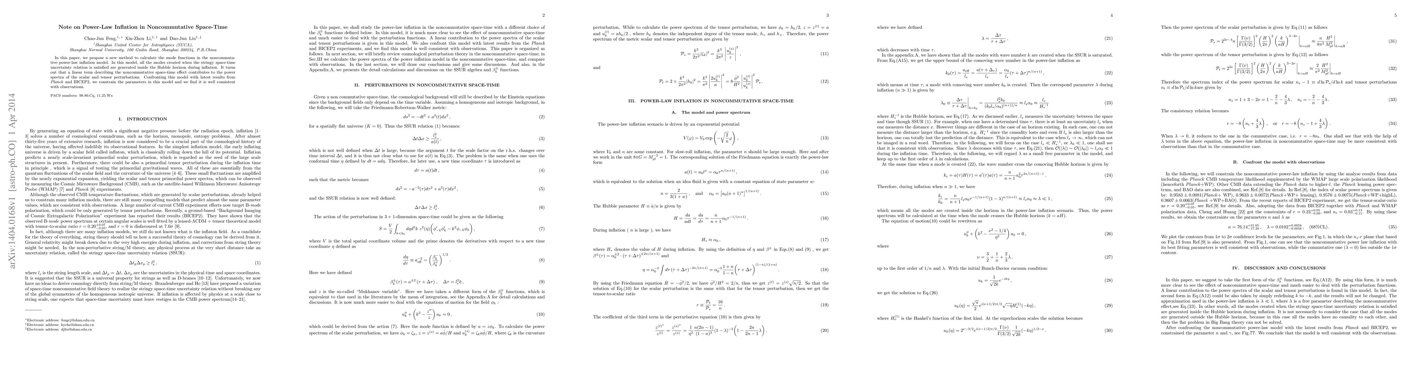 This paper introduces a novel method to compute mode functions in noncommutative power-law inflation, revealing that noncommutative effects contribute to the power spectra of scalar and tensor perturbations. The model aligns well with observational data from Planck and BICEP2 after parameter constraints are applied.