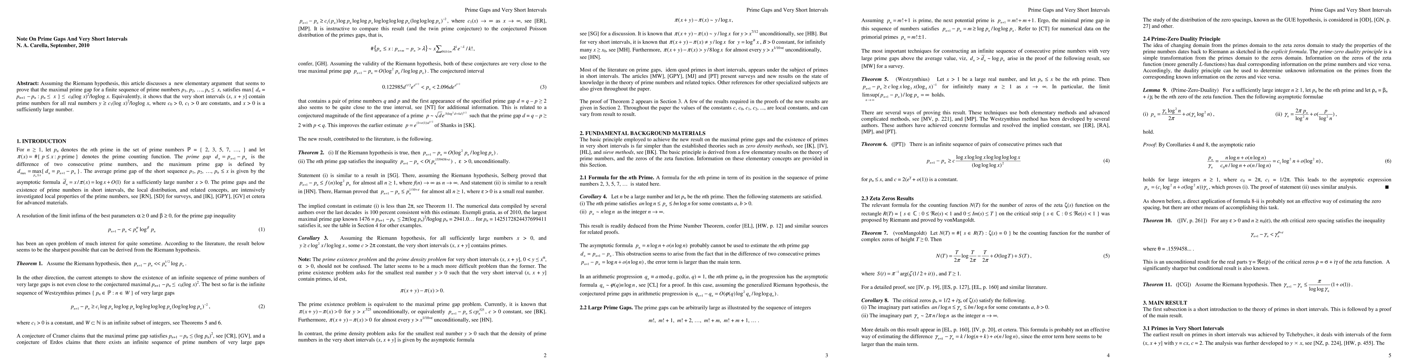 This research, under the assumption of the Riemann hypothesis, proposes an elementary proof suggesting that the largest prime gap within a sequence of primes up to x is bounded by c1((logx)^2)/loglogx, where c1 is a positive constant. It also indicates that very short intervals (x, x + y] contain prime numbers when y exceeds c2((logx)^2)/loglogx, for a positive constant c2 and sufficiently large x.