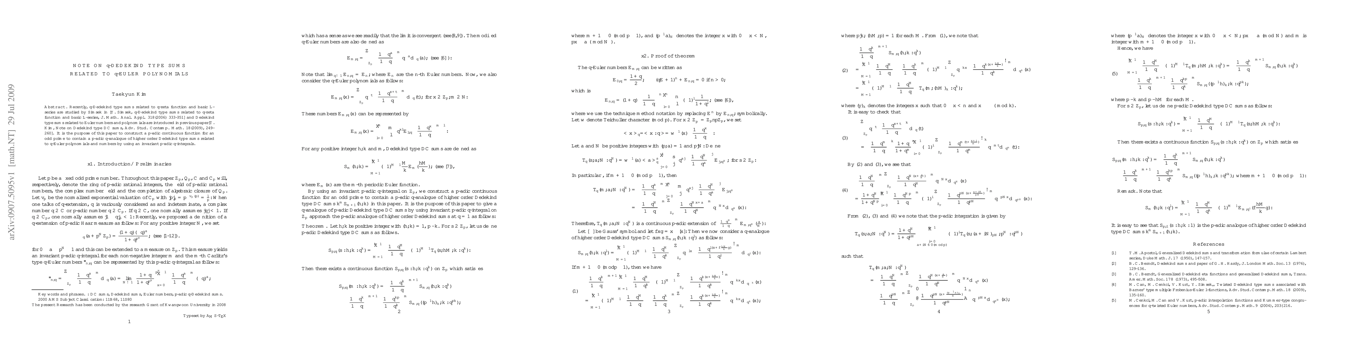 This paper constructs a p-adic continuous function for an odd prime that encapsulates a p-adic q-analogue of higher order Dedekind type sums connected to q-Euler polynomials and numbers. The focus is on the relationship between these mathematical constructs within the framework of p-adic analysis.