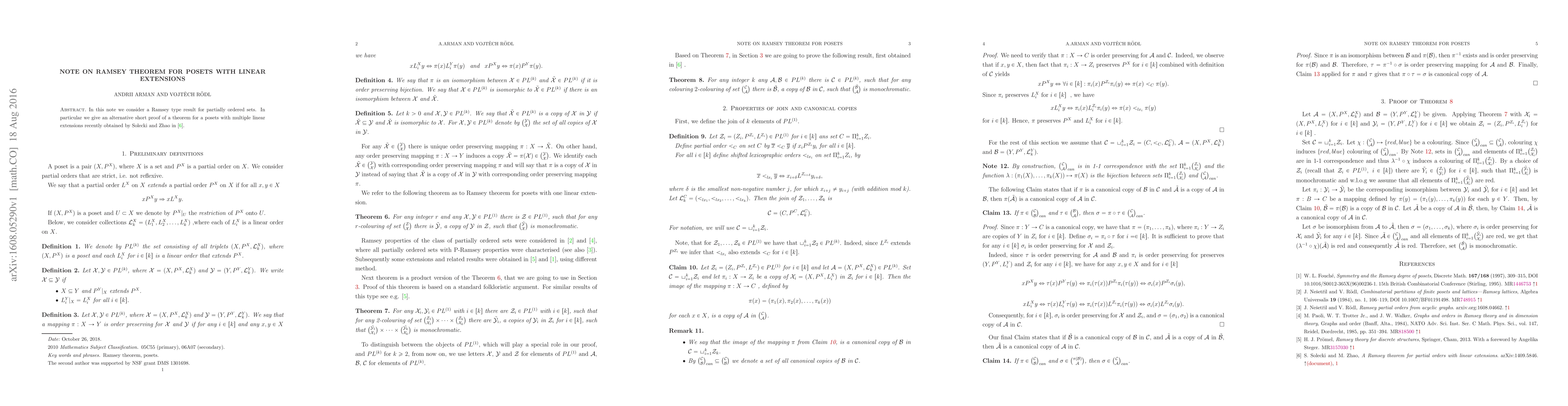 This paper provides a concise alternative proof of Solecki and Zhao's theorem on the existence of multiple linear extensions in partially ordered sets (posets), contributing to the field of Ramsey theory applied to posets.