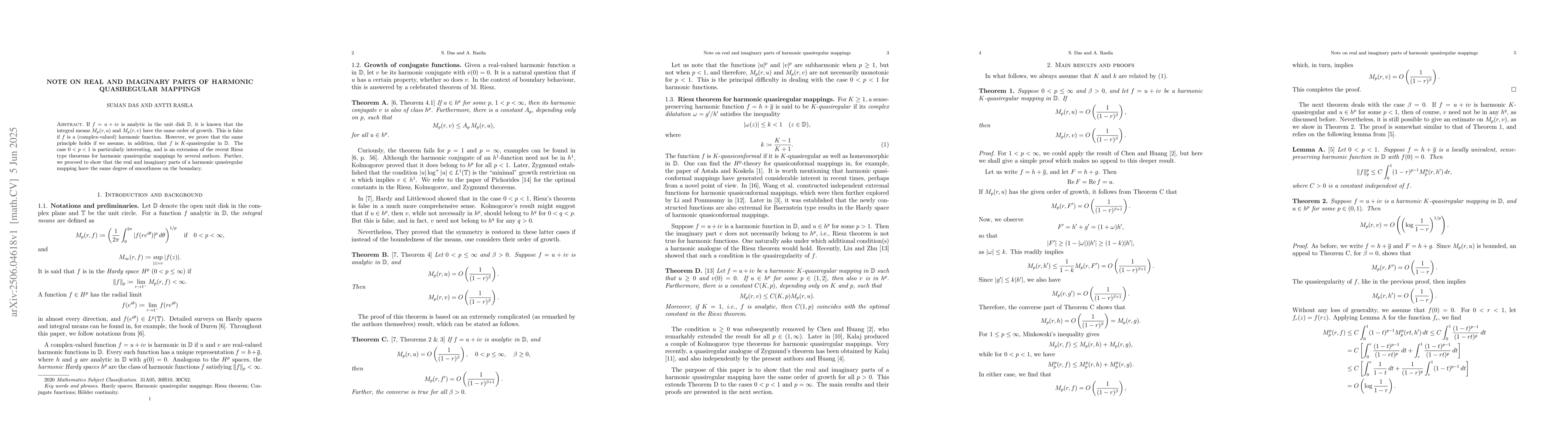 The paper employs techniques from complex analysis, specifically focusing on harmonic quasiregular mappings in the unit disk and their real and imaginary parts.
