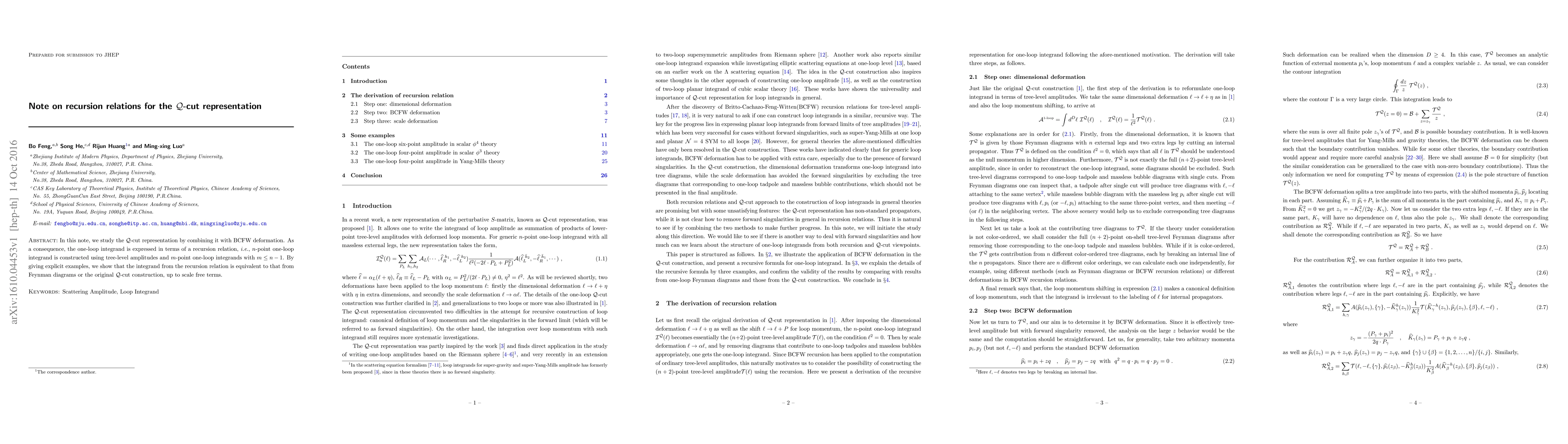 Researchers develop a recursive method to calculate one-loop integrands using the $ ilde{Q}$-cut representation and BCFW deformation, showing equivalence to Feynman diagrams or original $ ilde{Q}$-cut constructions with certain terms.