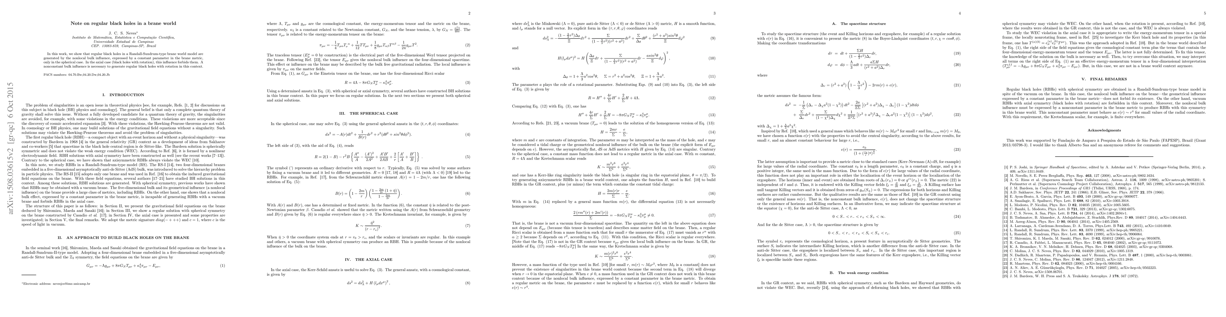 This paper demonstrates that regular black holes in a Randall-Sundrum-type brane world model can only arise from nonlocal bulk influence in the spherical case, while rotation prevents their formation. To create rotating regular black holes, a nonconstant bulk influence is required.