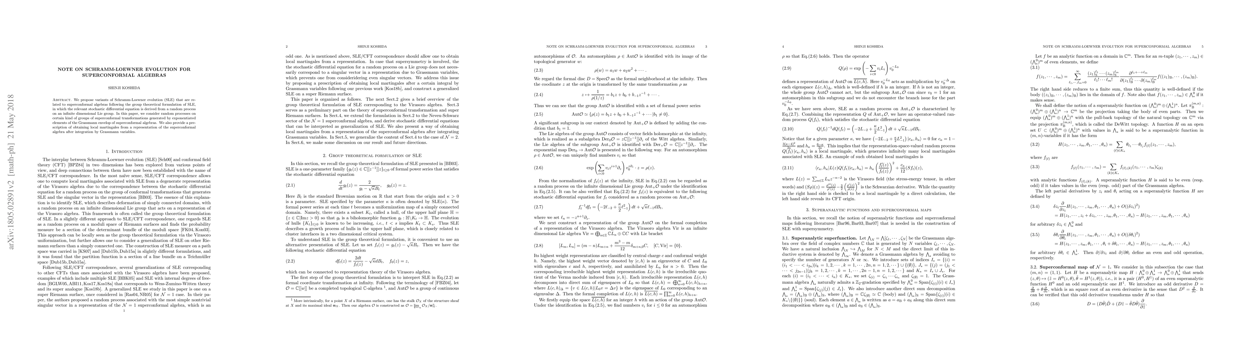 We propose variants of Schramm-Loewner evolution (SLE) that are related to superconformal algebras following the group theoretical formulation of SLE, in which the relevant stochastic differential equation is derived from a random process on an infinite dimensional Lie group. In this paper, we consider random processes on certain kind of groups of superconformal transformations generated by exponentiated elements of the Grassmann envelop of superconformal algebras. We also provide a prescription of obtaining local martingales from a representation of the superconformal algebra after integration by Grassmann variables.
