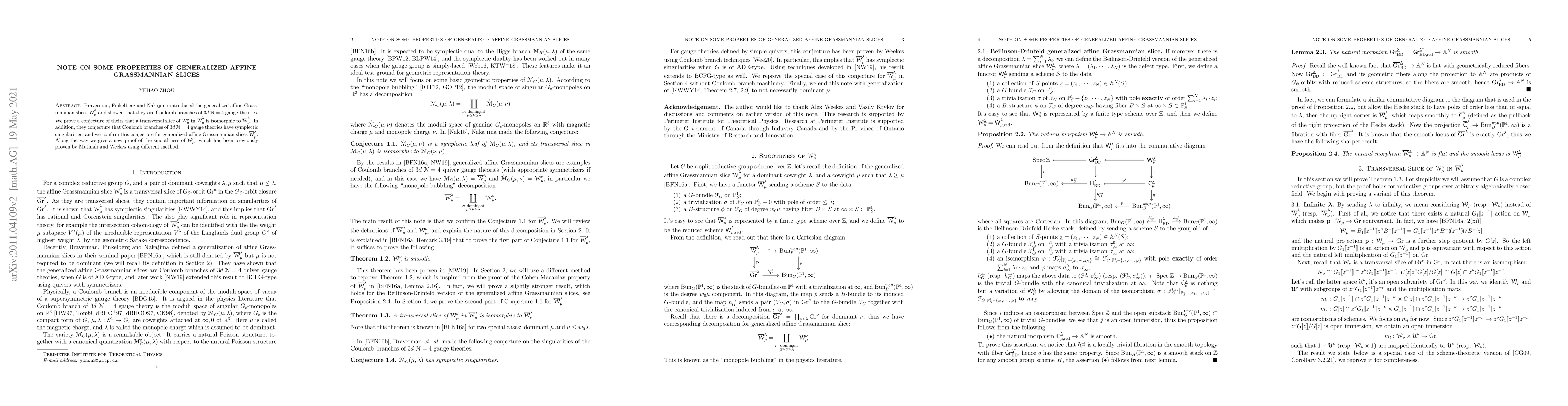 This paper proves a conjecture regarding the isomorphism between transversal slices of generalized affine Grassmannian slices and confirms that these slices exhibit symplectic singularities, aligning with the conjectured properties of $3d \mathcal N=4$ gauge theory Coulomb branches. Additionally, it provides a new proof for the smoothness of these slices.