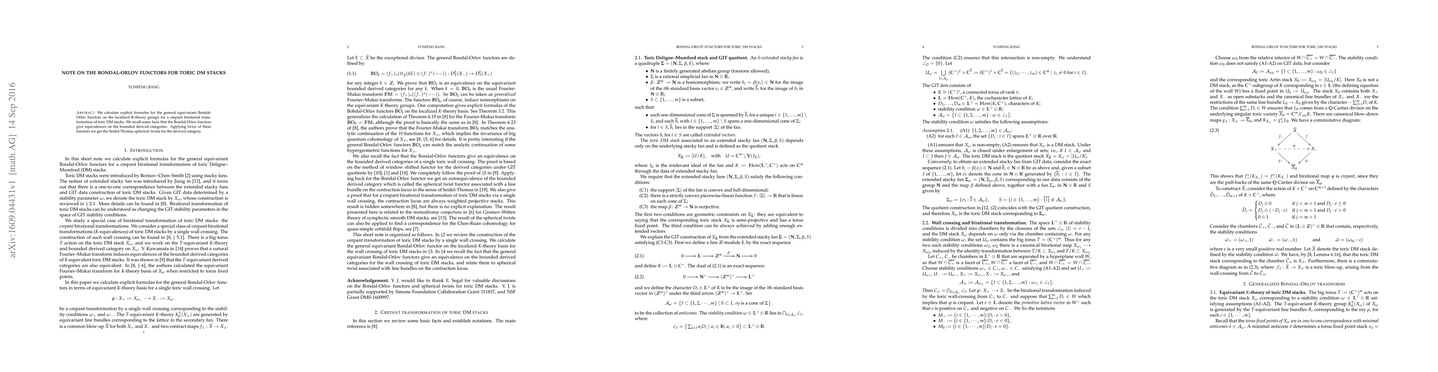 The paper provides detailed calculations and proofs for the Bondal-Orlov functors in the equivariant K-theory setting, specifically for toric DM stacks undergoing crepant transformations.