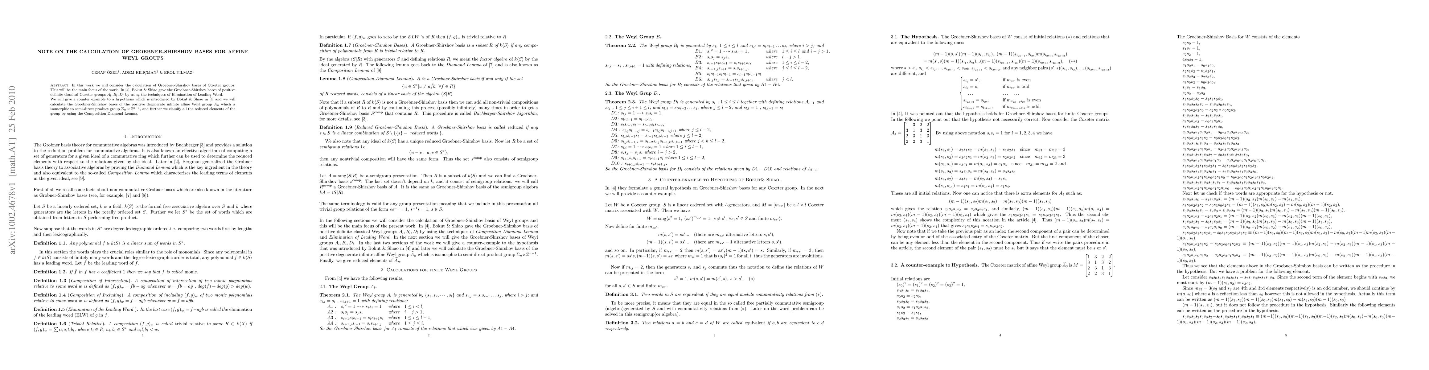 In this work we will consider the calculation of Groebner-Shirshov bases of Coxeter groups. This will be the main focus of the work. In \cite{Bokut-Shiao}, Bokut & Shiao gave the Groebner-Shirshov bases of positive definite classical Coxeter groups $A_l, B_l, D_l$ by using the techniques of Elimination of Leading Word. We will give a counter example to a hypothesis which is introduced by Bokut & Shiao in \cite{Bokut-Shiao} and we will calculate the Groebner-Shirshov bases of the positive degenerate infinite affine Weyl group $\widetilde{A}_n $ which is isomorphic to semi-direct product group $\Sigma_n \ltimes {\mathbb Z}^{n-1}$, and further we classify all the reduced elements of the group by using the Composition Diamond Lemma.