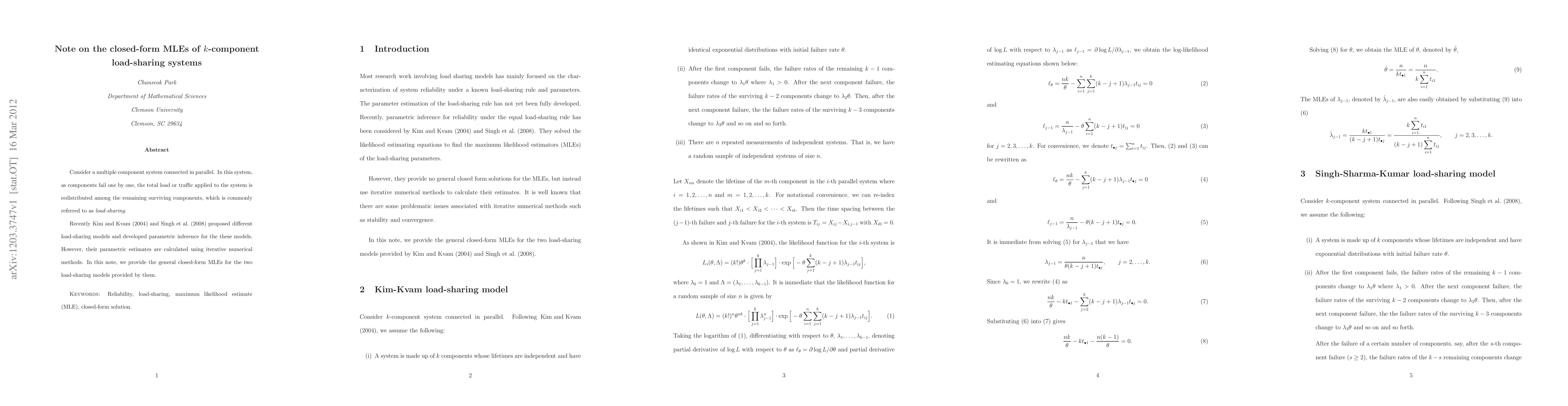 Recently Kim and Kvam (2004) and Singh, Sharma, Kumar (2008) proposed different load-sharing models and developed parametric inference for the these models. However, their parametric estimates are calculated using iterative numerical methods. In this note, we provide the general closed-form MLEs for the two load-sharing models provided by them.