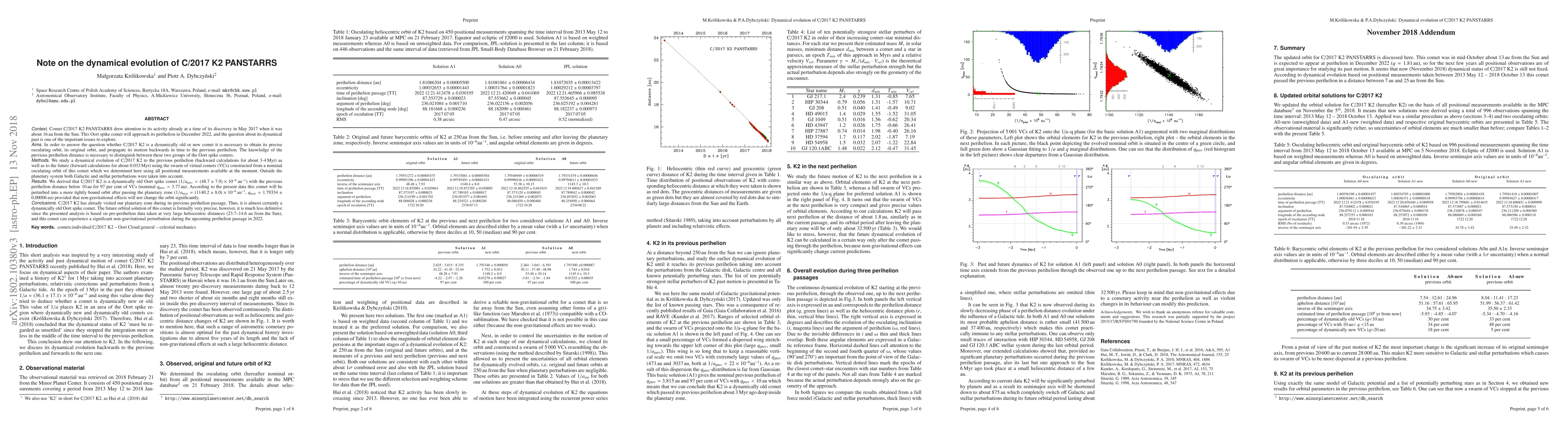 This paper investigates the dynamical evolution of Comet C/2017 K2 PANSTARRS, revealing it to be a dynamically old Oort spike comet that has previously visited the planetary zone, with backward calculations showing it passed within 10 au of the Sun during its last perihelion.