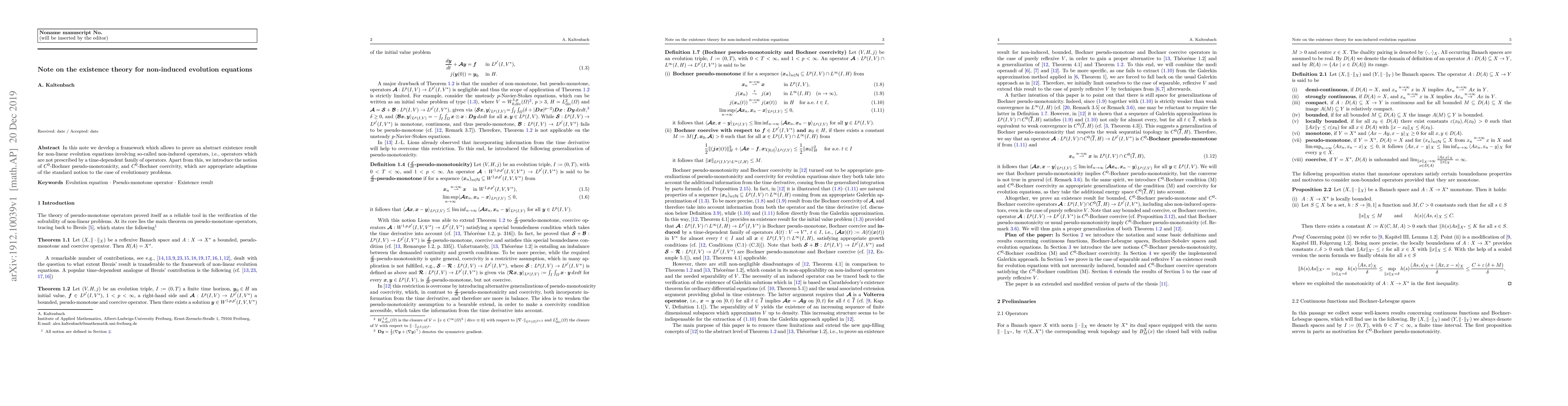 In this note we develop a framework which allows to prove an abstract existence result for non-linear evolution equations involving so-called non-induced operators, i.e., operators which are not prescribed by a time-dependent family of operators. Apart from this, we introduce the notion of $C^0$-Bochner pseudo-monotonicity, and $C^0$-Bochner coercivity, which are appropriate adaptions of the standard notion to the case of evolutionary problems.