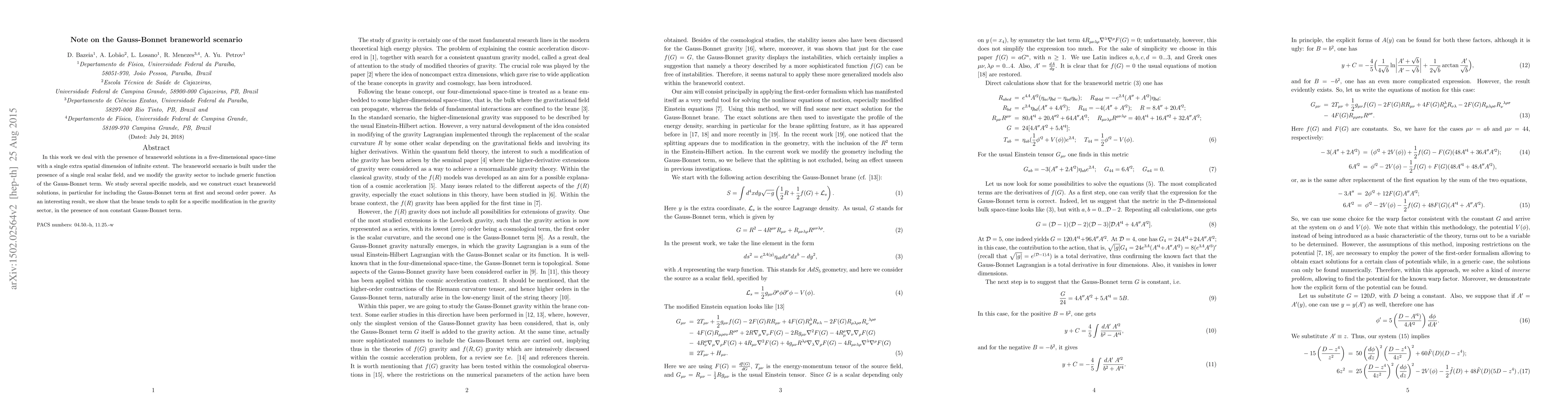 This paper explores braneworld solutions in a five-dimensional space-time with a single infinite extra spatial dimension, incorporating a scalar field and a modified gravity sector with the Gauss-Bonnet term. It constructs exact solutions and finds that a specific modification can cause the brane to split when the Gauss-Bonnet term is non-constant.