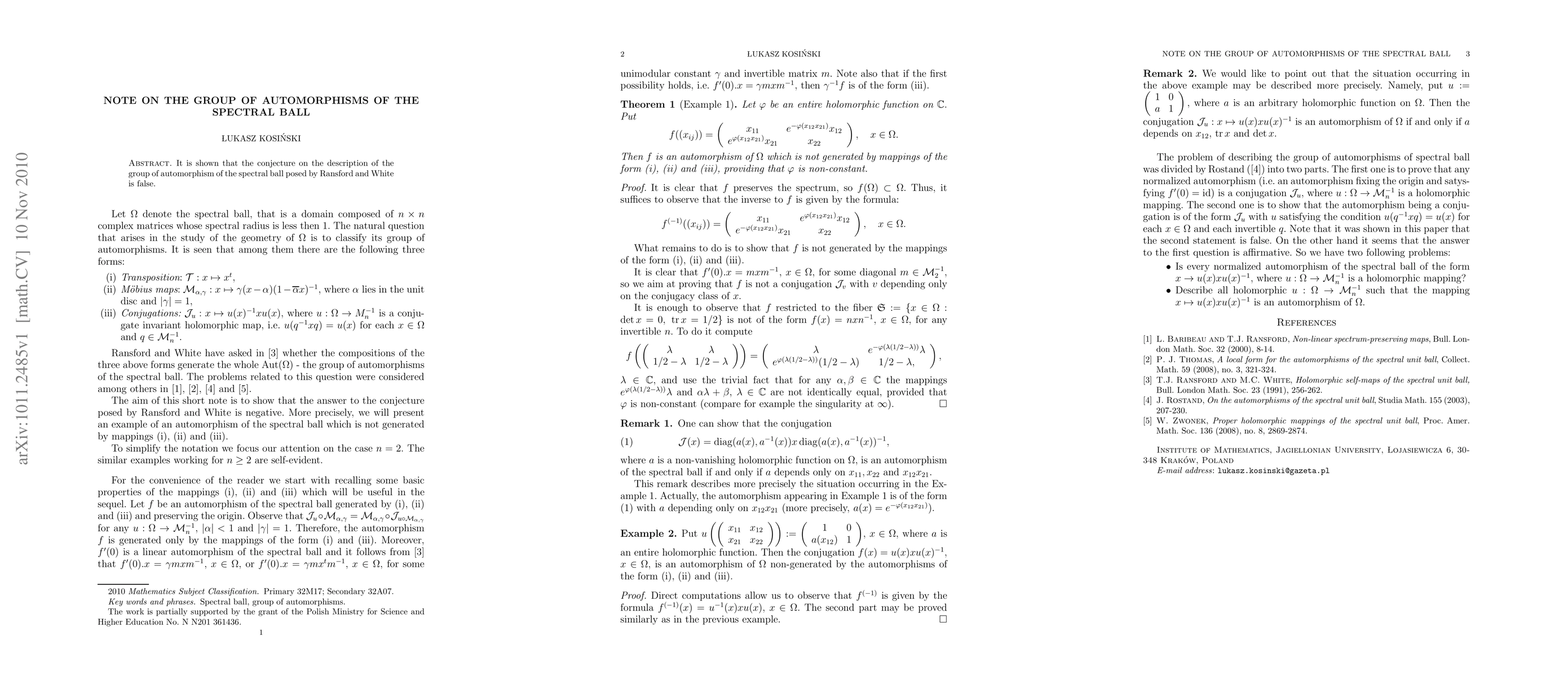 It is shown in this short note that the conjecture on the description of the group of automorphism of the spectral ball posed by Ransford and White is false.
