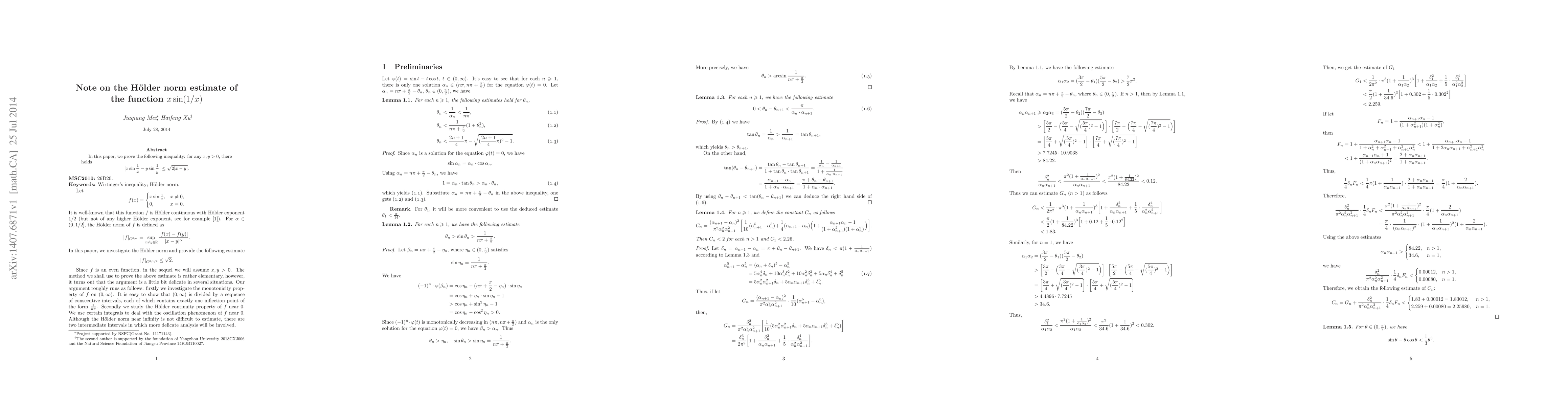 In this paper, we prove the following inequality: for any $x, y>0$, there holds $$\big|x\sin\frac{1}{x} - y\sin\frac{1}{y} \big| \leq \sqrt{2|x - y|}.$$