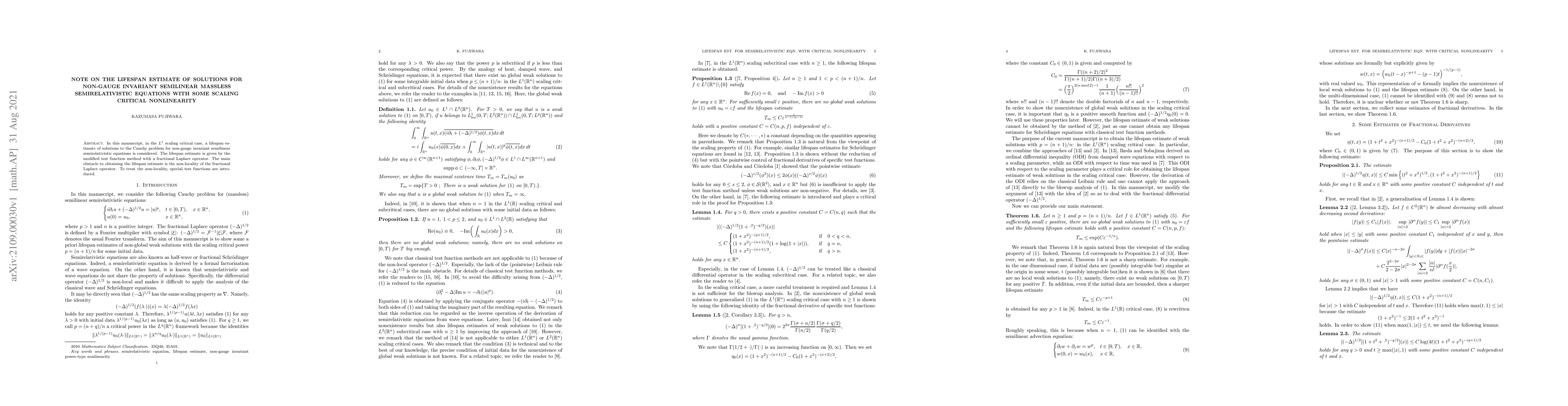 In this manuscript, in the $L^1$ scaling critical case, a lifespan estimate of solutions to the Cauchy problem for non-gauge invariant semilinear semirelativistic equations is considered. The lifespan estimate is given by the modified test function method with a fractional Laplace operator. The main obstacle to obtaining the lifespan estimate is the non-locality of the fractional Laplace operator. To treat the non-locality, special test functions are introduced.