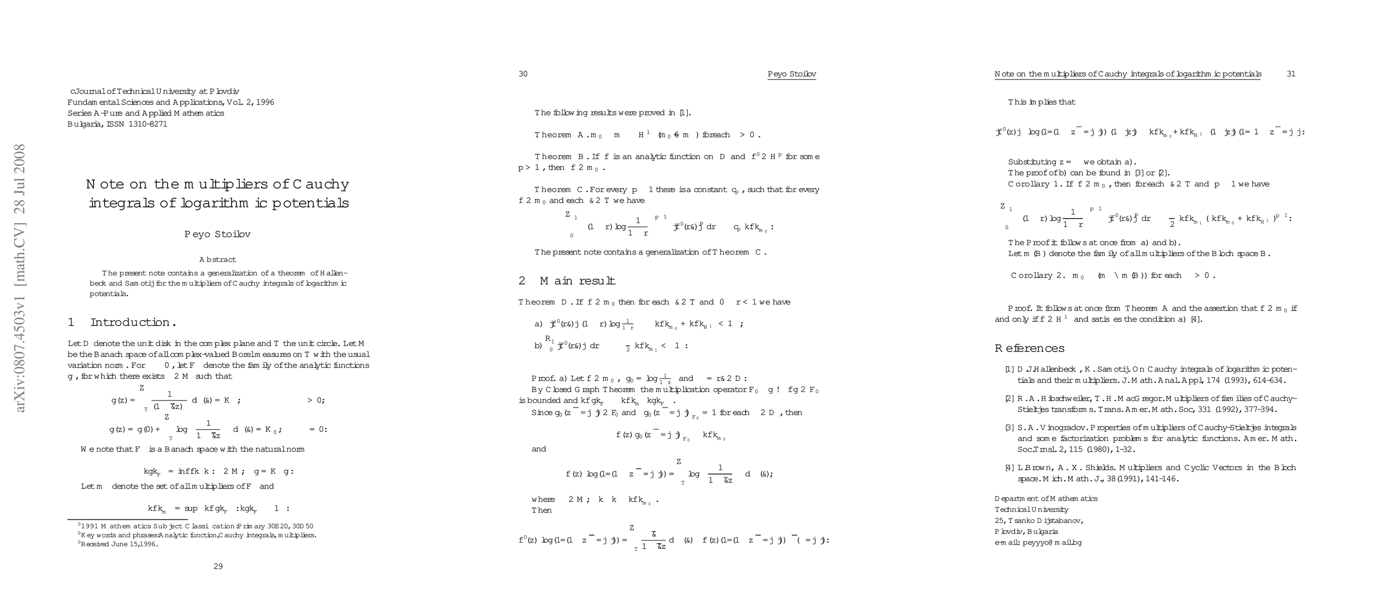 Summary: This paper generalizes a theorem by Hallenbeck and Samotij concerning the multipliers of Cauchy integrals associated with logarithmic potentials, extending the original findings to broader contexts.