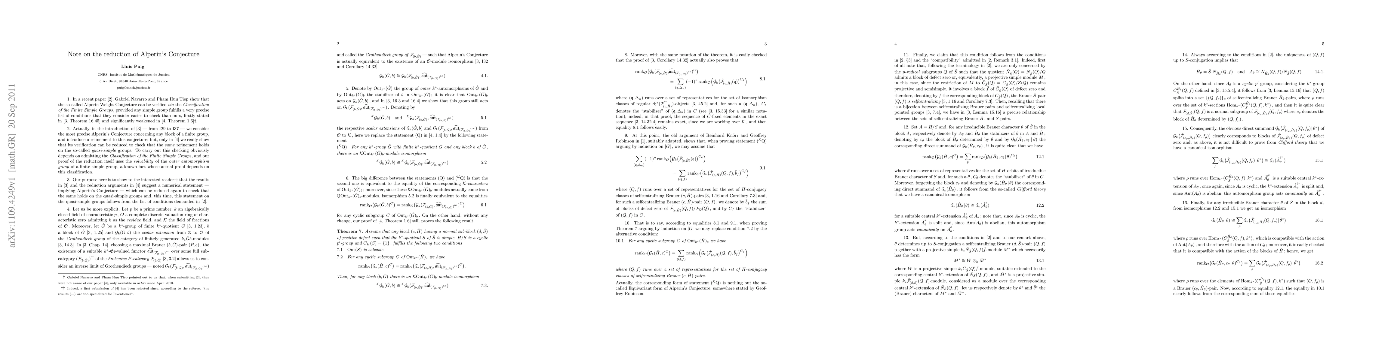 In a recent paper, Gabriel Navarro and Pham Huu Tiep show that the so-called Alperin Weight Conjecture can be verified via the Classification of the Finite Simple Groups, provided any simple group fulfills a very precise list of conditions. Our purpose here is to show to the interested reader that the results in our book "Frobenius categories versus Brauer blocks", Progress in Math. 274(2009), and the reduction arguments in "On the reduction of Alperin's Conjecture to the quasi-simple groups", J. of Algebra 328(2011), suggest a numerical statement - implying Alperin's Conjecture block by block - which can be reduced again to check that the same holds on the quasi-simple groups and, this time, this statement on the quasi-simple groups follows from the list of conditions demanded by Navarro and Tiep.