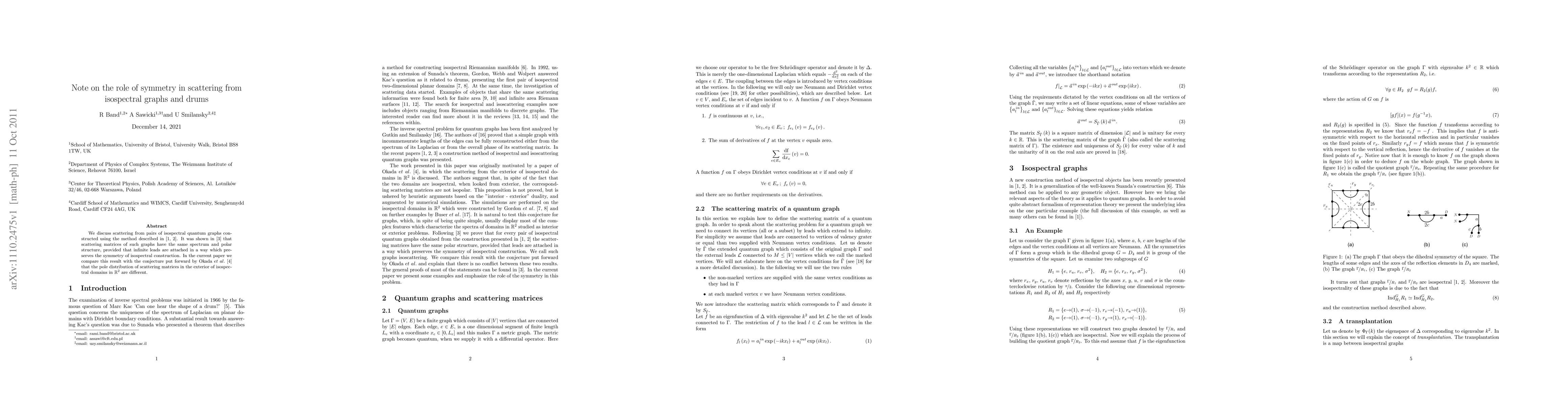We discuss scattering from pairs of isospectral quantum graphs constructed using the method described in [1, 2]. It was shown in [3] that scattering matrices of such graphs have the same spectrum and polar structure, provided that infinite leads are attached in a way which preserves the symmetry of isospectral construction. In the current paper we compare this result with the conjecture put forward by Okada et al. [4] that the pole distribution of scattering matrices in the exterior of isospectral domains in R^2 are different.