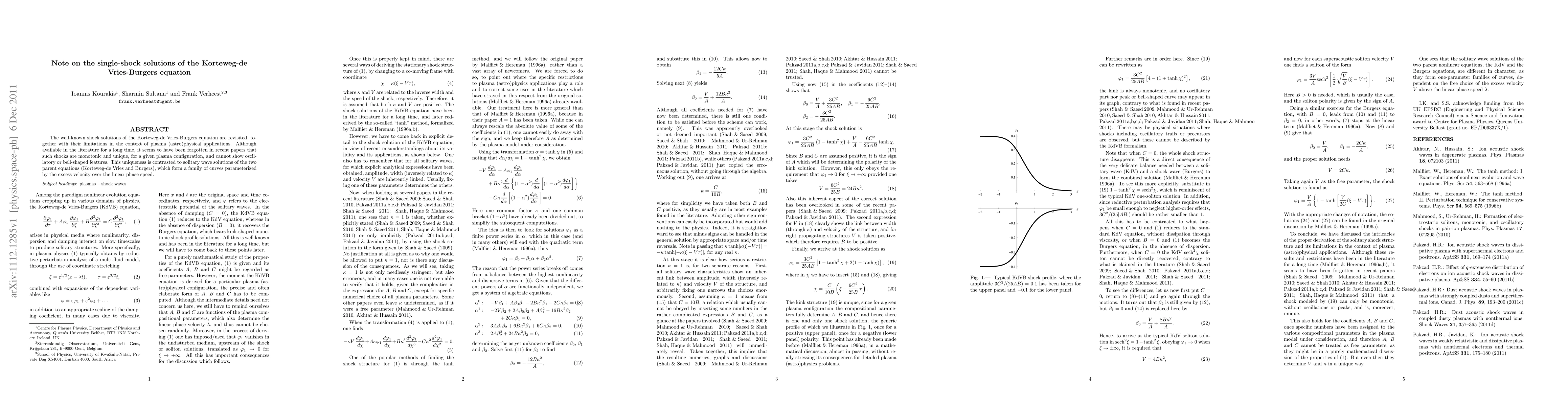 This paper revisits the single-shock solutions of the Korteweg-de Vries-Burgers equation, highlighting their monotonic and unique nature for specific plasma configurations, contrasting them with the oscillatory solitary wave solutions of their parent equations. The study underscores the limitations of these shock solutions in plasma (astro)physical applications.