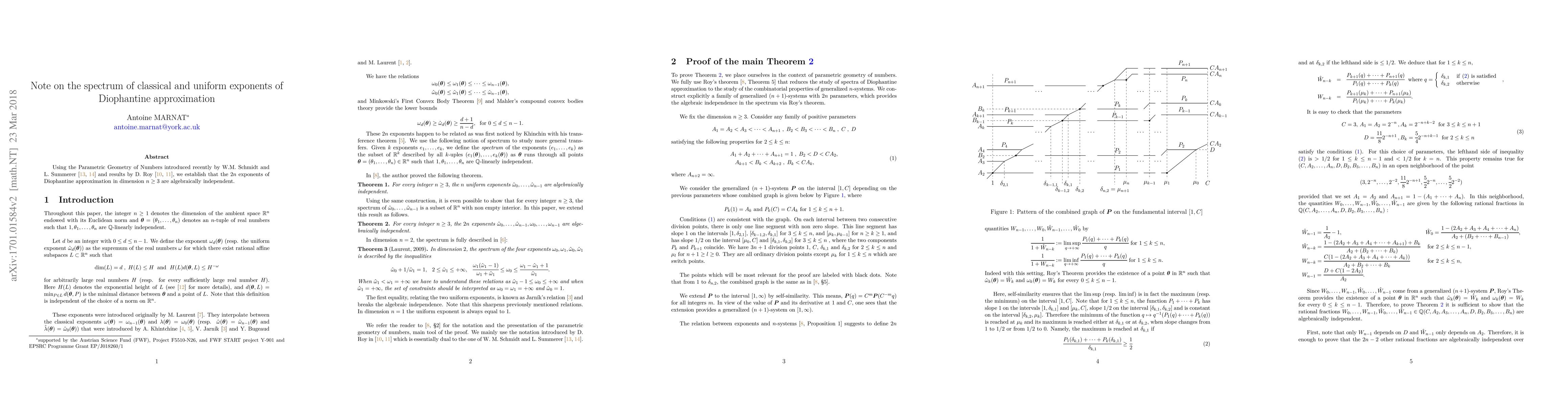 This paper establishes that the spectrum of $2n$ classical and uniform exponents for Diophantine approximation in dimension $n\geq3$ forms a subset of $\mathbb{R}^{2n}$ with a non-empty interior, leveraging recent advancements in Parametric Geometry of Numbers and results by D. Roy.