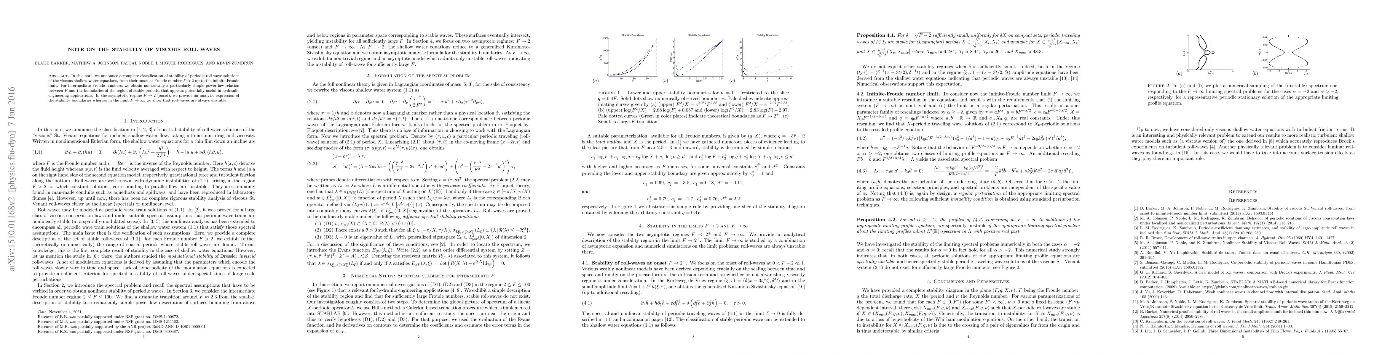 This paper classifies the stability of periodic roll-wave solutions in viscous shallow-water equations, revealing a power-law relation for intermediate Froude numbers and providing analytic and asymptotic stability boundaries. The findings are valuable for hydraulic engineering applications.