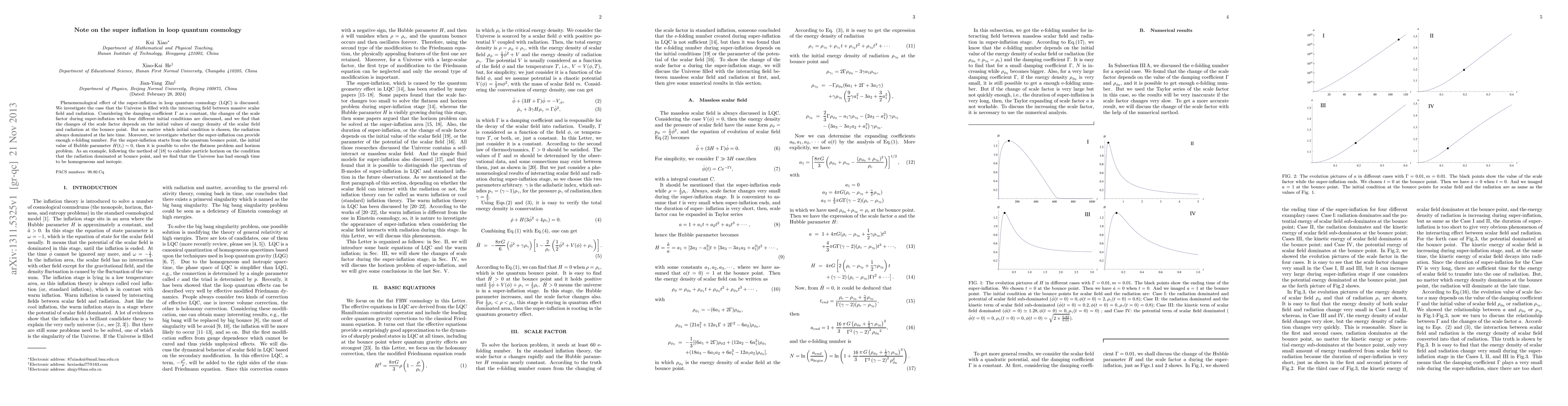 Phenomenological effect of the super-inflation in loop quantum cosmology (LQC) is discussed. We investigate the case that the Universe is filled with the interacting field between massive scalar field and radiation. Considering the damping coefficient $\Gamma$ as a constant, the changes of the scale factor during super-inflation with four different initial conditions are discussed, and we find that the changes of the scale factor depends on the initial values of energy density of the scalar field and radiation at the bounce point. But no matter which initial condition is chosen, the radiation always dominated at the late time. Moreover, we investigate whether the super-inflation can provide enough e-folding number. For the super-inflation starts from the quantum bounce point, the initial value of Hubble parameter $H(t_i)\sim0$, then it is possible to solve the flatness problem and horizon problem. As an example, following the method of \cite{Amoros-prd} to calculate particle horizon on the condition that the radiation dominated at bounce point, and we find that the Universe has had enough time to be homogeneous and isotopic.