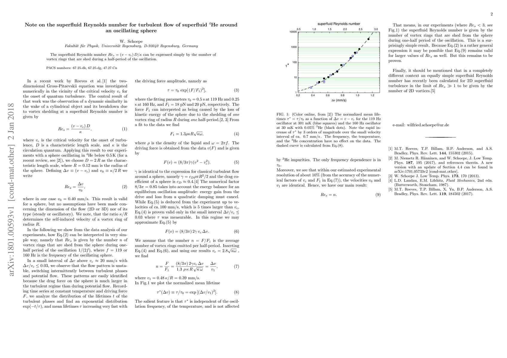 The superfluid Reynolds number $Re_s = (v - v_c) \,D/ \kappa$ can be expressed simply by the number of vortex rings that are shed during a half-period of the oscillation.