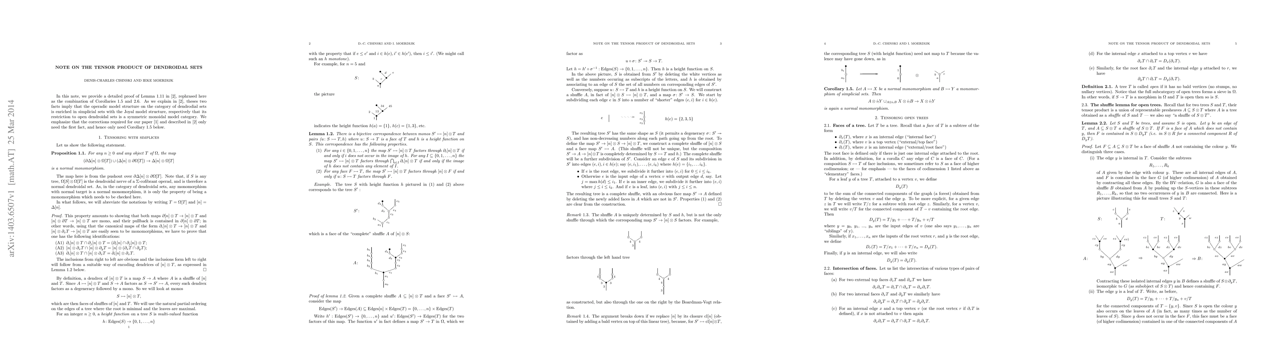 This paper corrects a claim about the tensor product of dendroidal sets and provides a proof for a technical lemma used in an erratum. It aims to improve understanding of homotopy operads by addressing a previously incorrect statement.