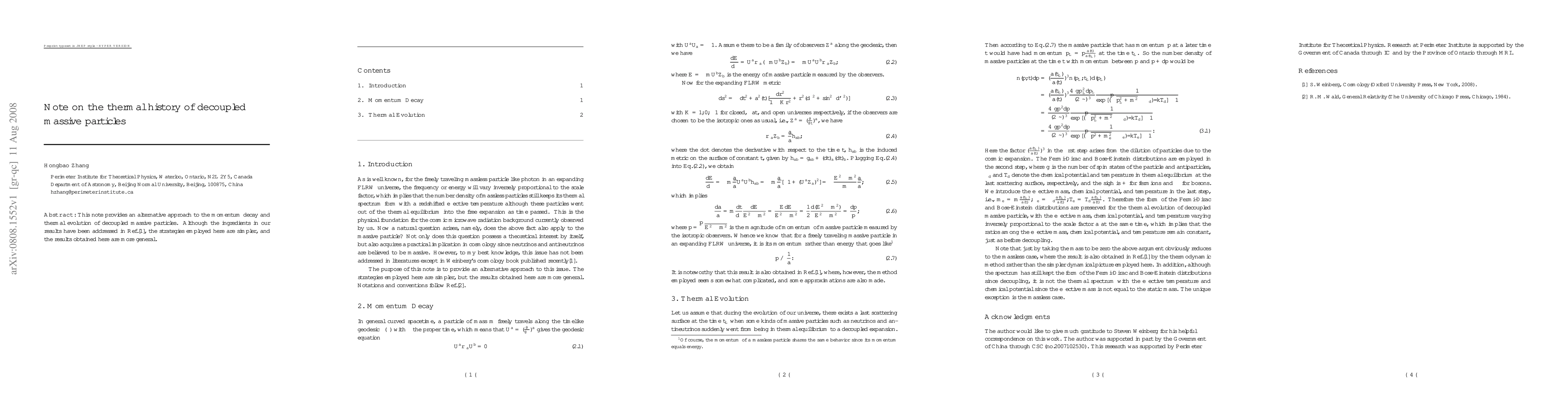 This note provides an alternative approach to the momentum decay and thermal evolution of decoupled massive particles. Although the ingredients in our results have been addressed in Ref.\cite{Weinberg}, the strategies employed here are simpler, and the results obtained here are more general.