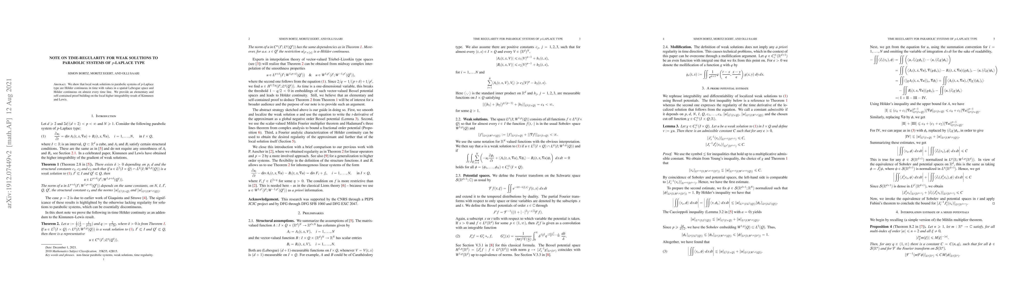 Researchers prove that solutions to parabolic systems of p-Laplace type are H"{o}lder continuous in time, with values in a spatial Lebesgue space.