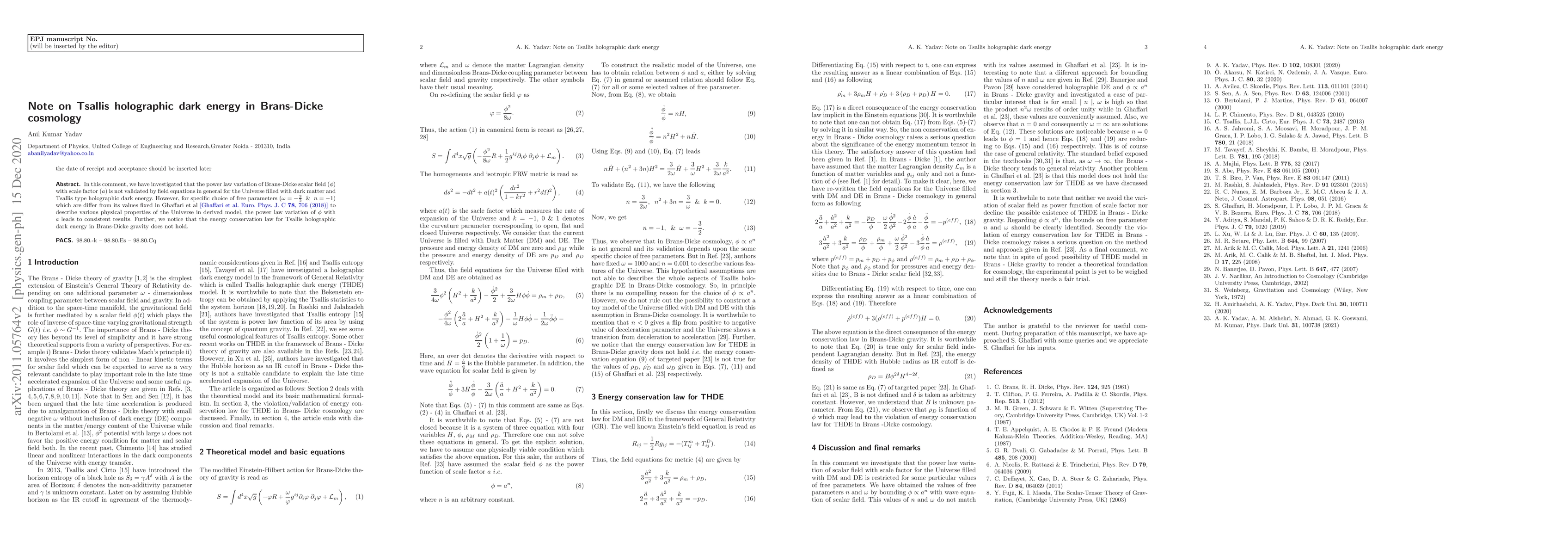 In this comment, we have investigated that the power law variation of Brans-Dicke scalar field $(\phi)$ with scale factor $(a)$ is not validated by field equations in general for the Universe filled with dark matter and Tsallis type holographic dark energy. However, for specific choice of free parameters $(\omega = -\frac{3}{2}\;\; \&\;\; n = -1)$ which are differ from its values fixed in Ghaffari et al \textcolor{blue}{[Ghaffari et al. Euro. Phys. J. C \textbf{78}, 706 (2018)]} to describe various physical properties of the Universe in derived model, the power law variation of $\phi$ with $a$ leads to consistent results. Further, we notice that the energy conservation law for Tsallis holographic dark energy in Brans-Dicke gravity does not hold.